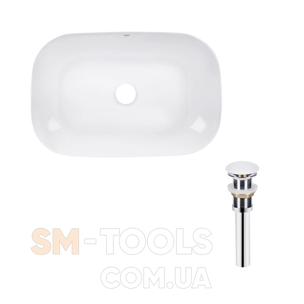 Комплект Qtap Robin: Раковина накладная прямоугольная 610x400x145 мм White + Донный клапан PU02