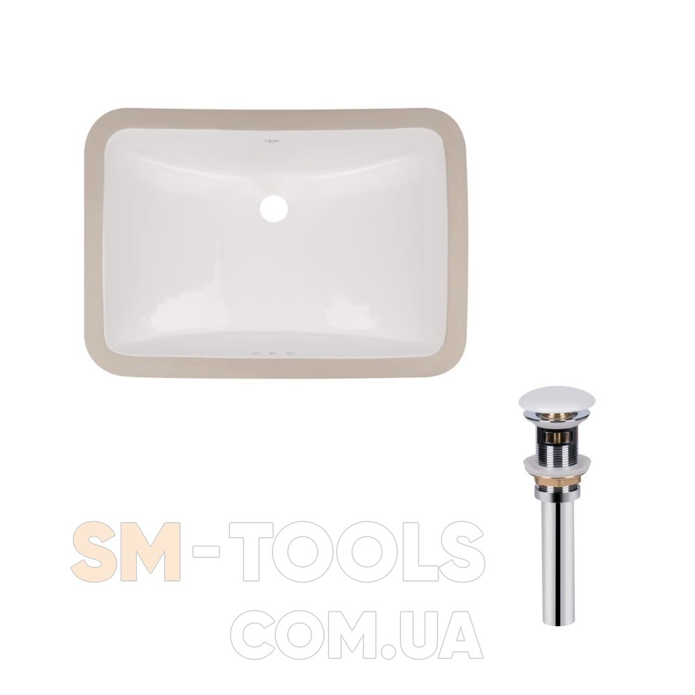Комплект Qtap Stork: Врезная раковина прямоугольная 530x370x200 мм White + Донный клапан PU02O