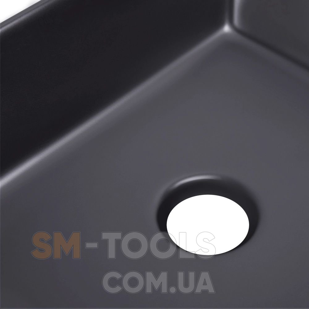 Описание Комплект Qtap Tern: Раковина накладная прямоугольная 475х370х140 мм Matt Black + Донный клапан PU03