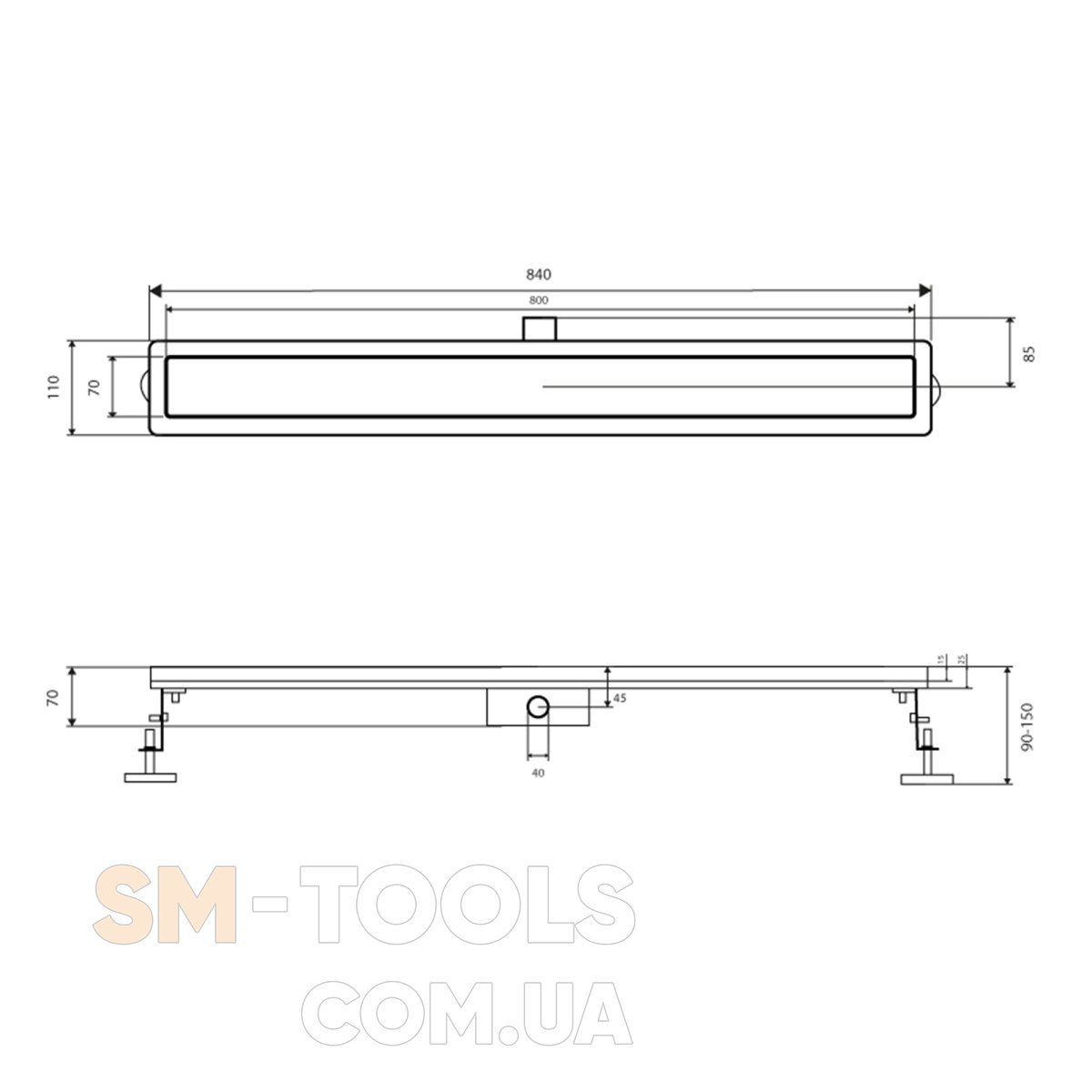 Характеристики Трап из нержавеющей стали Qtap Taurus Tile800 линейный с сухим затвором под плитку