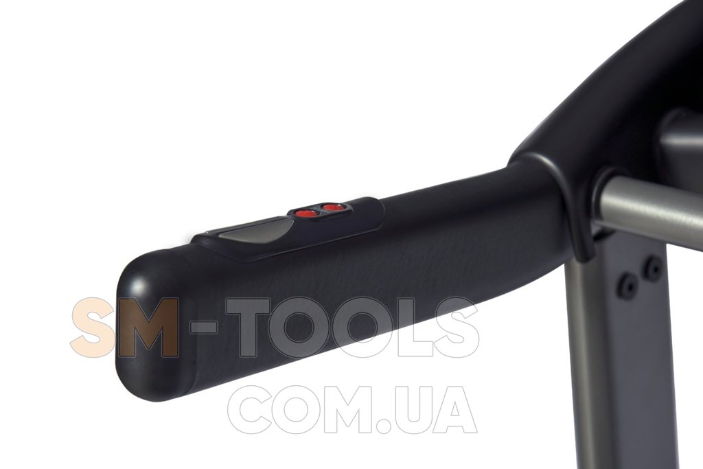 - Контроль пульса: Встроенный беспроводной приемник импульсов, пульс измеряется с помощью датчиков в ручках. < li>Интуитивное управление: LCD-дисплей 120 х 60 мм с голубой подсветкой для четкой информации и быстрой смены скорости (2-6-10-14 км/ч) и наклона (3-7-11-15%).