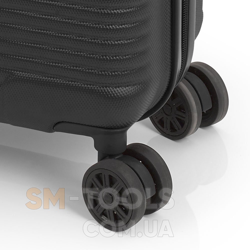 Чемодан Gabol Balance XP (S) Grey (123422-016) оснащен четырьмя колесами с возможностью независимого разворота каждого колеса на 360°. Система предполагает равномерное перераспределение нагрузки на каждое колесо, что в свою очередь способствует плавному движению и маневренности чемодана, прилагая при этом минимум усилий. Колеса изготовлены из высокотемпературного термопластического полиуретана (TPU). Материал имеет прочность сравнимую с пластиком, гибкостью силикона, а также повышенную устойчивость к перепадам температуры. Отличительной особенностью колес из TPU материала является снижение шума до минимума во время движения чемодана неровной поверхностью. Благодаря устойчивости к истиранию, материал колес отличается длительным сроком эксплуатации. Restriction of Chemicals) - Регламент Европейского общества по регистрации, оценке, авторизации и ограничению производства и использования химических веществ.