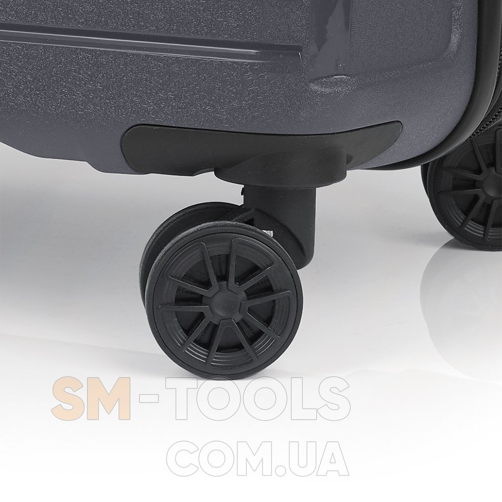 Чемодан Gabol Osaka (S) Grey (121022-016) оснащен четырьмя сдвоенными колесами с возможностью разворота на 360°. Конструкция обеспечивает равномерное перераспределение нагрузки на каждое колесо, что способствует плавному движению и маневренности чемодана. Колеса изготовлены из термопластического полиуретана (TPU). Этот материал имеет прочность сравнимую с пластиком, гибкостью силикона, а также повышенную стойкость к перепадам температуры и истиранию. Благодаря этому колеса имеют длительный срок эксплуатации. Также отличительной особенностью колес из TPU материала является снижение шума до минимума при движении чемодана неровной поверхностью. Registration, Evaluation, Authorisation and Restriction of Chemicals) - Регламент Европейского общества по регистрации, оценки, авторизации и ограничения производства и использования химических веществ.