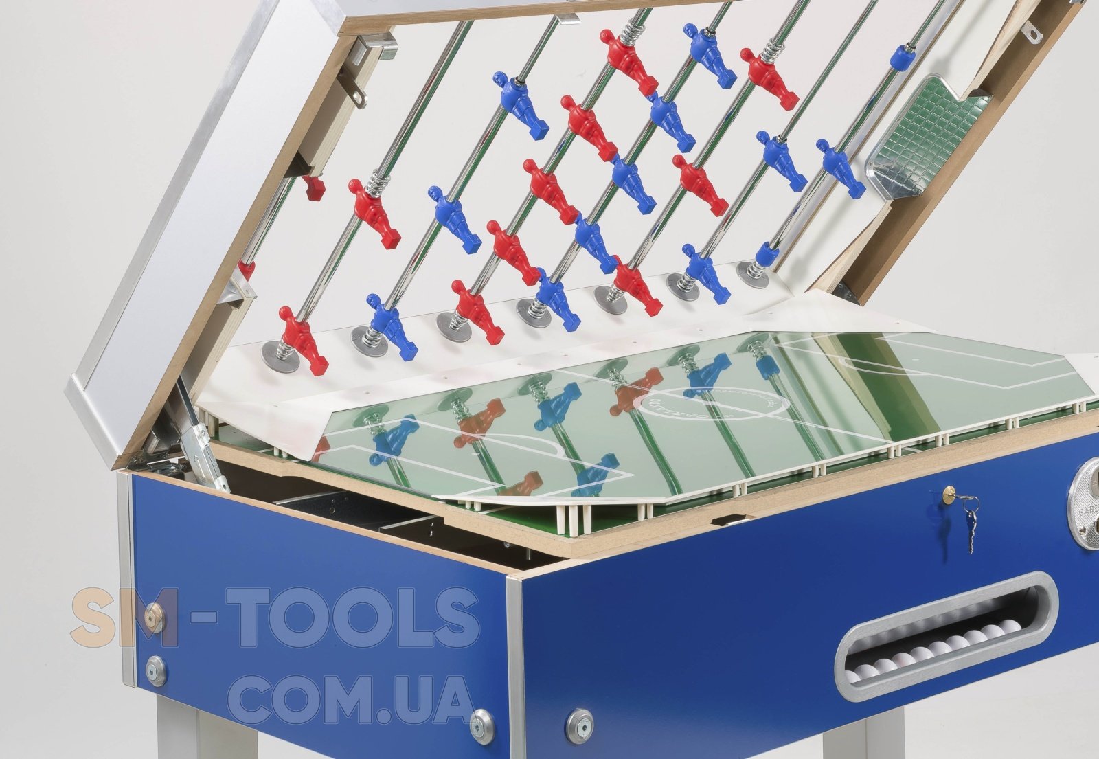 Настольный футбол с жетоноприемником Garlando Challenge (A-9UCVL) - надежный и очень простой в эксплуатации оператором: верхняя часть стола имеет подъемный механизм с надежной фиксацией, позволяющий легко и быстро его обслуживать. Модель изготовлена непосредственно в Италии из высококачественных материалов, обеспечивающих долговечность и удовольствие от игры, с учетом конкретных требований, которым должен соответствовать футбольный стол. Этот стол характеризуется надежностью и устойчивостью, оснащен стандартным жетоноприемником, что делает его пригодным для игры в любых местах: в барах, пабах, развлекательных заведениях, торговых центрах. Настольный футбол с жетоноприемником Garlando Challenge (A-9UC отвечает европейским стандартам безопасности EN 71-1, 71-2, 71-3 и 71-9.