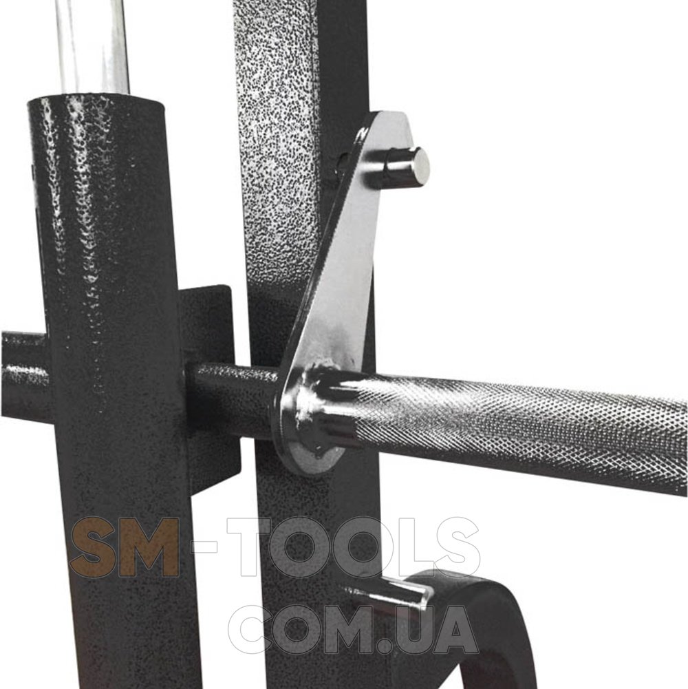 Комплект включает держатели для дисков разного диаметра (25 мм и 50 мм), что делает ее универсальной для любых наборов весов. Интегрированный турник на высоте 2075 мм позволяет добавить упражнения на подтягивание и развивать верхнюю часть тела. Зафиксированный гриф позволяет минимизировать вероятность травм, исключая неправильные движения, которые могут привести к них.