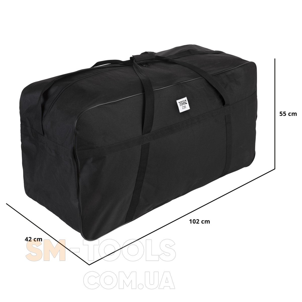 Сумка дорожная TravelZ Bag 235 liter Black (604348) – универсальная сумка, которую вы можете использовать в качестве легкой дорожной сумки, спортивной сумки, сумки для хранения вещей. Идеально подойдет для легких вещей, спортивного инвентаря, обуви, для перевозки больших объемов. Одно большое основное отделение на молнии. Ручки охватывают сумку по всему периметру и соединены застежкой на липучке. Изготовлена из легкого и прочного полиэстерового материала. Сумку можно сложить, что экономит много места.