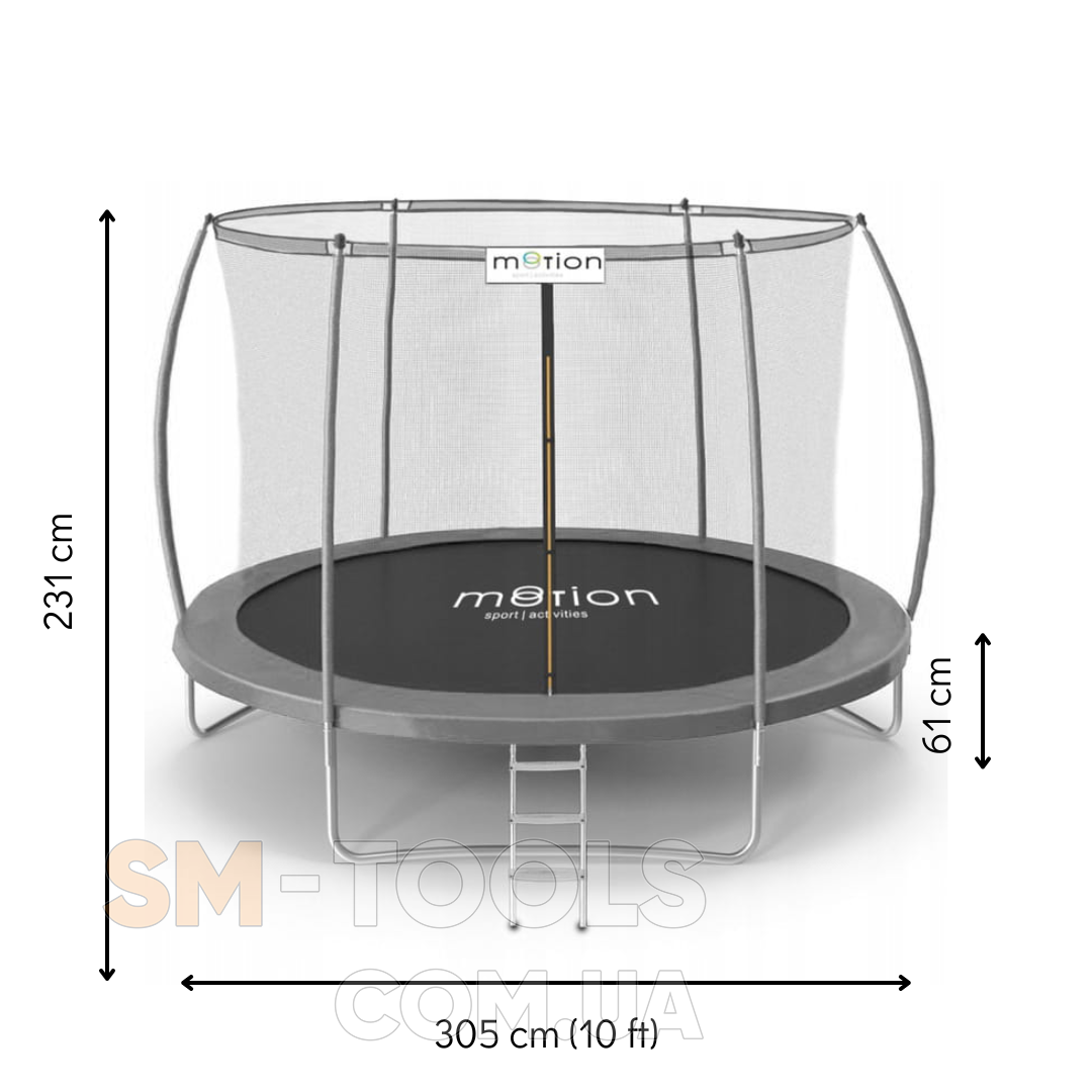 Батут Jumi Motion Sport Line Premium 10ft (305см) с внутренней сеткой серый