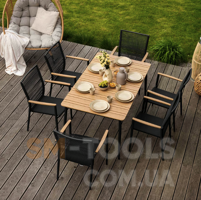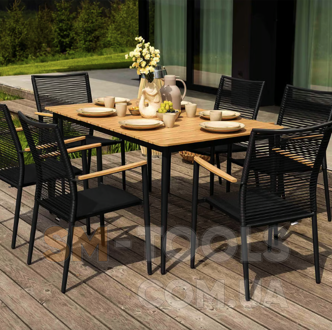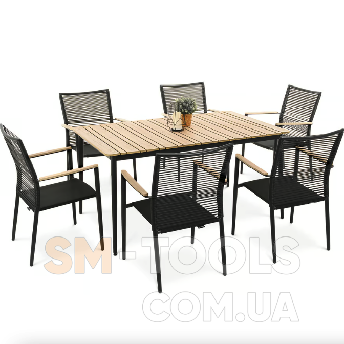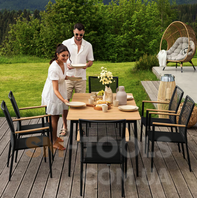 Набор садовой мебели Breno от Di Volio сделает ваше открытое пространство идеальным местом для отдыха, встречи с друзьями и совместного празднования еды. Комплект состоит из большого стола с прямоугольной столешницей и шести удобных стульев с подлокотниками. Благодаря использованию прочных материалов мебель полностью устойчива к вредному воздействию различных погодных условий. в классическом дизайне сада и террасы.