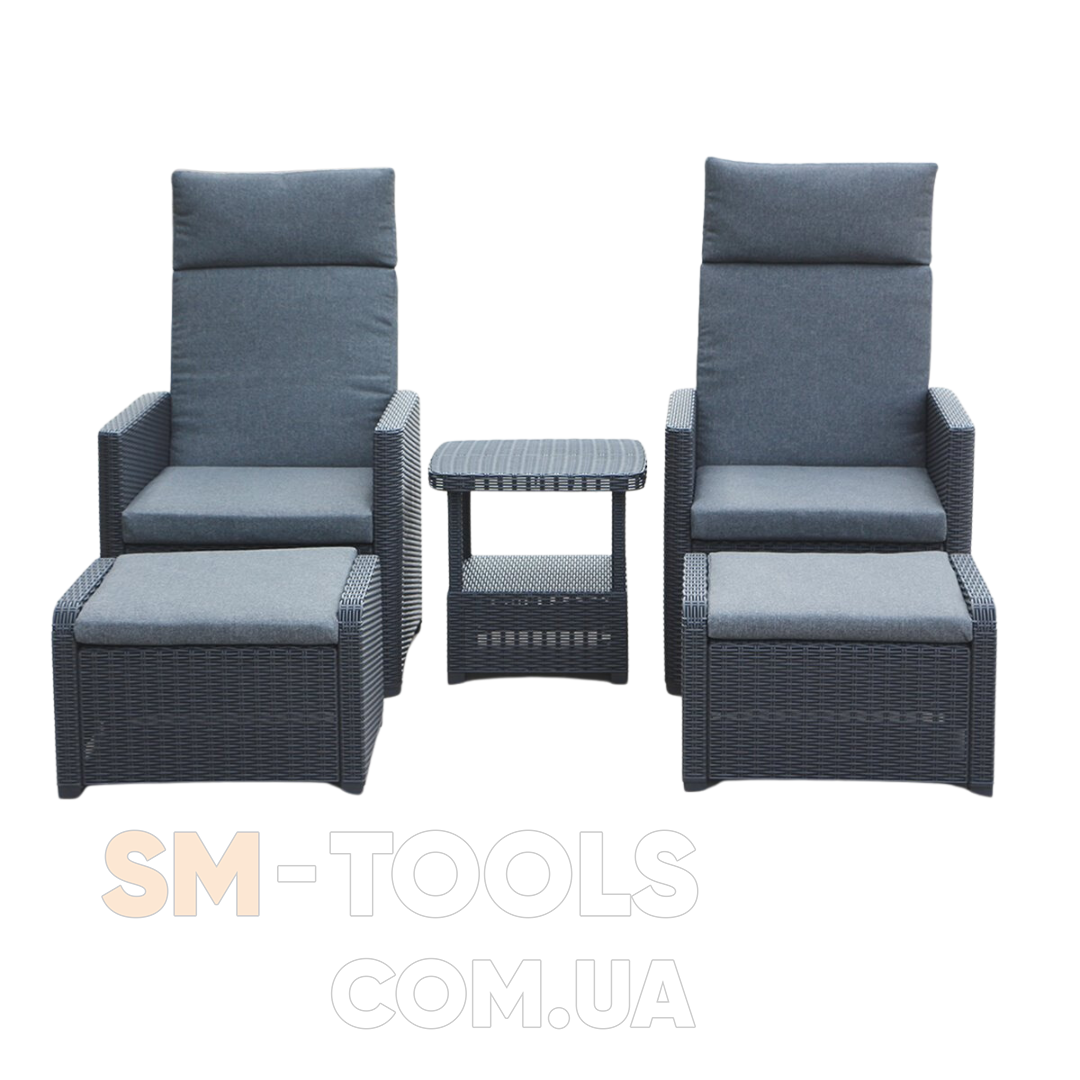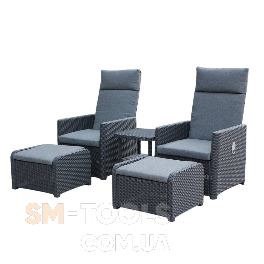 Набор садовой мебели GARDEN LINE LYON (2 раскладных кресла, столик, 2 подножки) антрацит