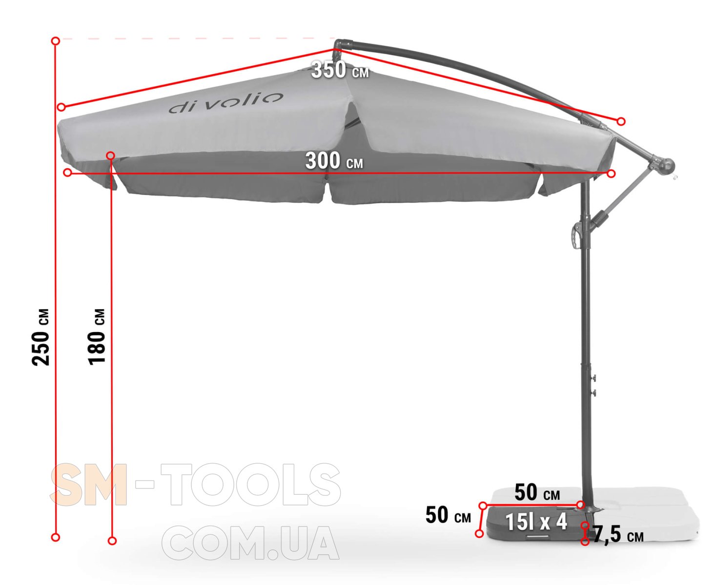 Зонтик садовый Di Volio EMPOLI 350см серый Основа садового зонтика
