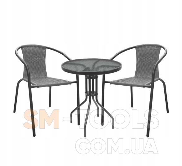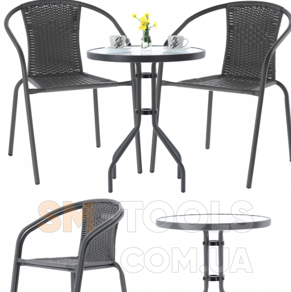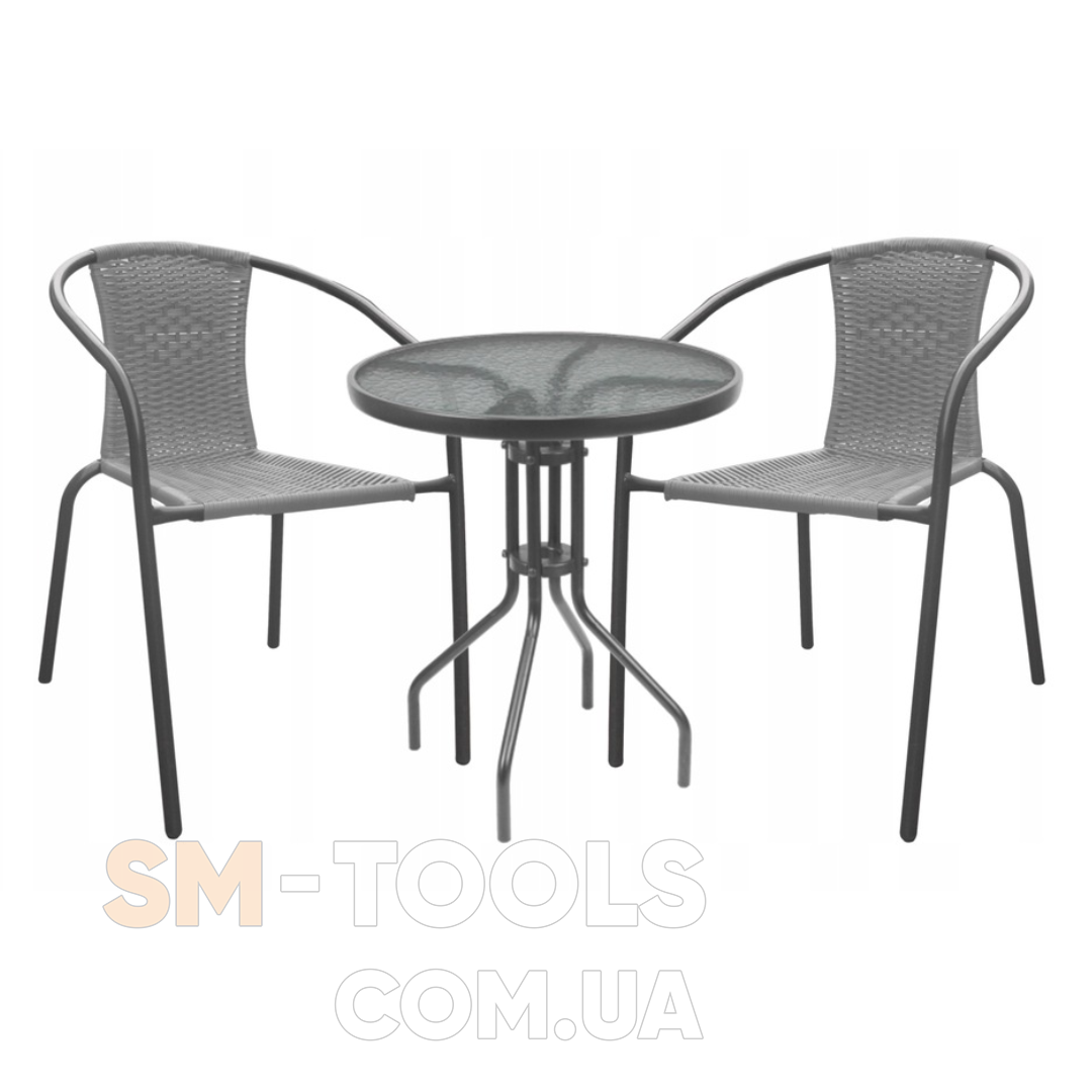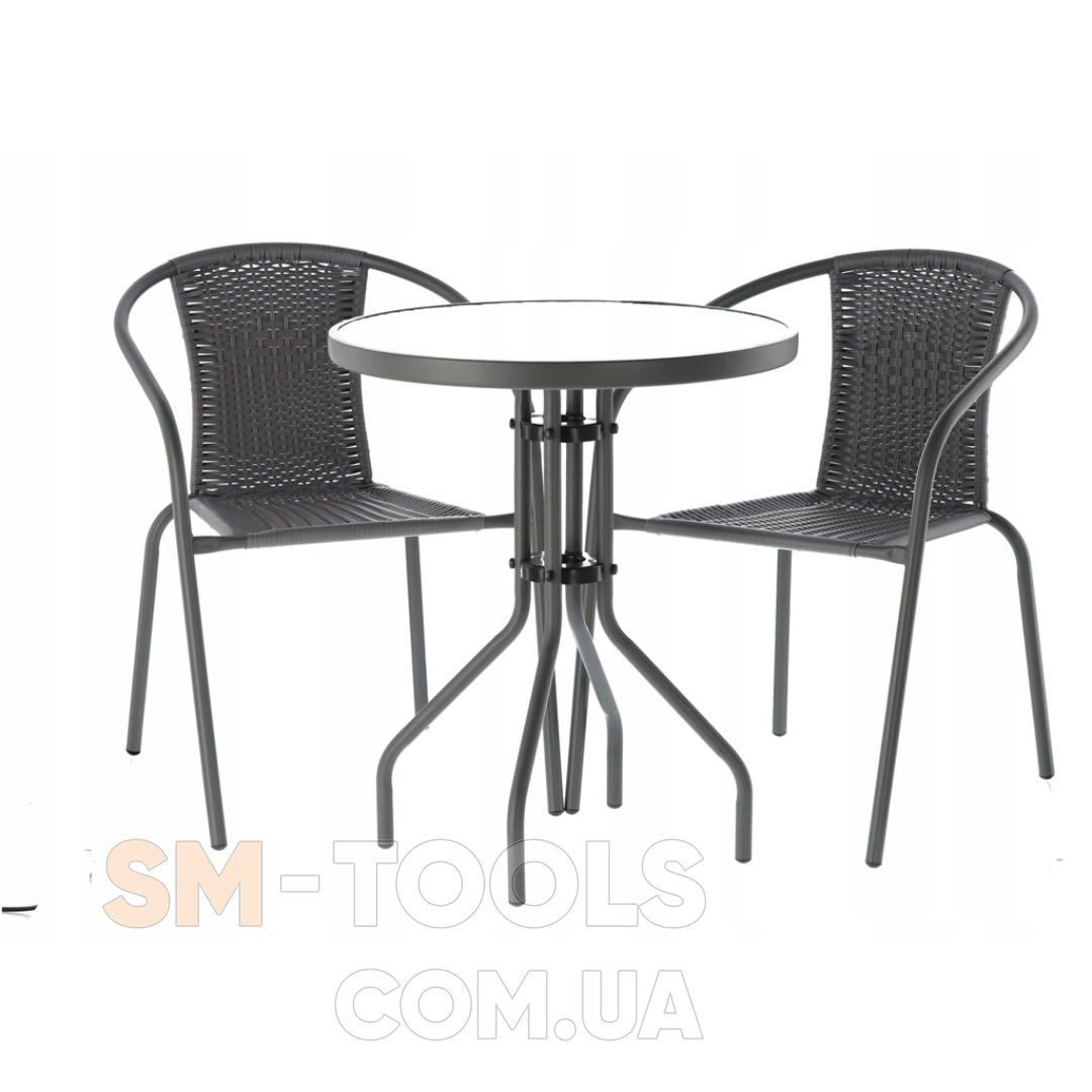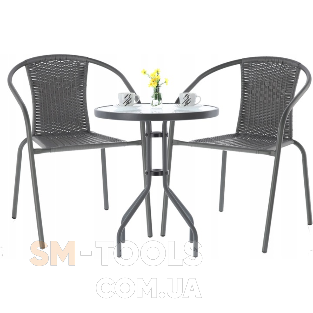 Садовая мебель Chomik Bistro New стол и 2 стулья серый