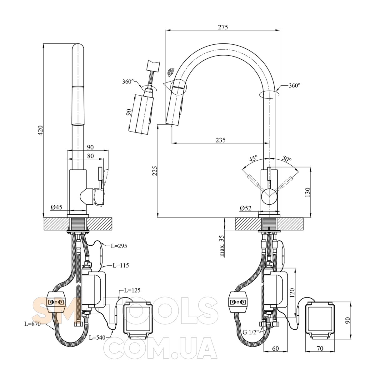 Характеристики Смеситель для кухни с выдвижным изливом Kroner KRP Edelstahl Klassisch - PVD03916 сенсорный