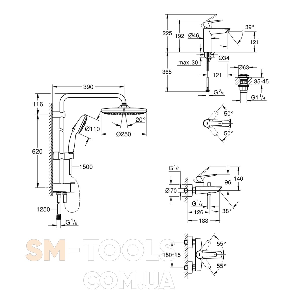 Характеристики Набор смесителей 3 в 1 для ванной комнаты Grohe QuickFix Start Black UA303305RM
