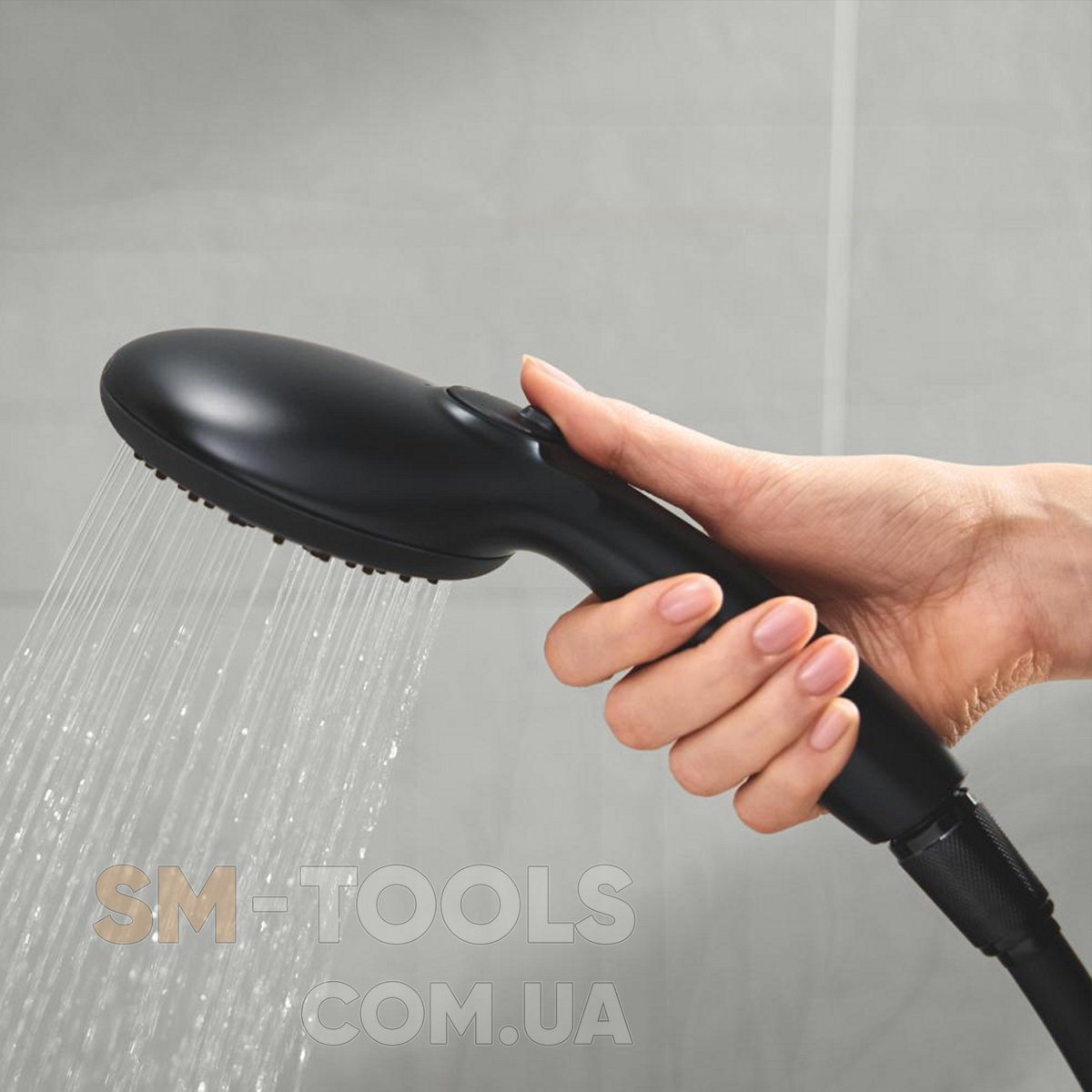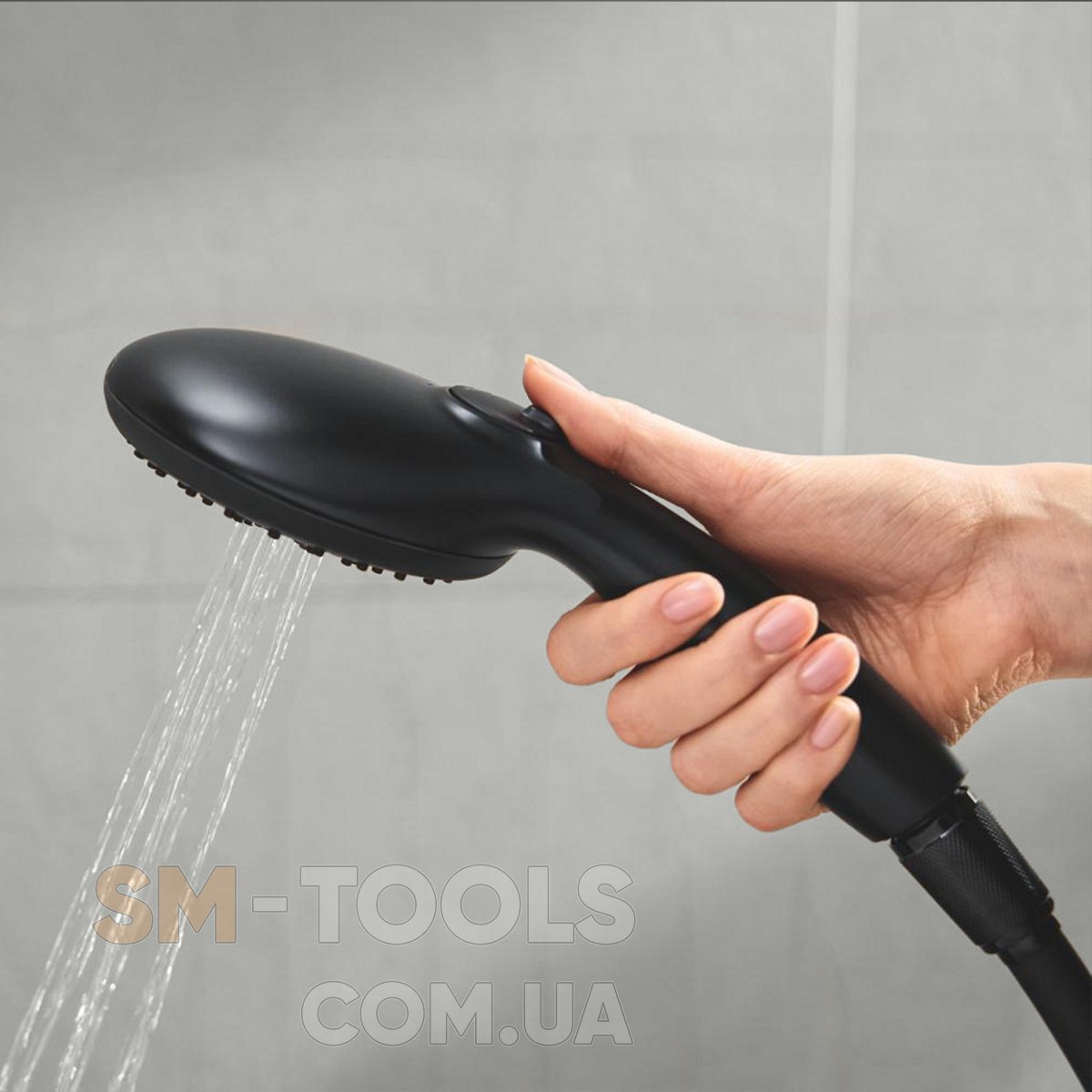 Набор смесителей 3в1 для ванной комнаты Grohe QuickFix Start Black UA303305RM – это идеальное решение для стильного и функционального оформления. Этот комплект включает в себя все необходимое для комфортного пользования душем, ванной и умывальником, обеспечивая надежность, экономию воды и современный дизайн. с двумя режимами струи (Rain и SmartRain), обеспечивающий равномерное распределение воды благодаря технологии GROHE DreamSpray. Ручной душ Vitalio Start 110 с двумя видами струи: Rain и Jet. Горизонтальный душевой кронштейн длиной 390 мм, который можно настроить перед установкой. Аэратор со шаровым шарниром и углом поворота ±10°.