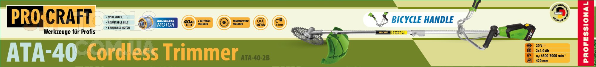 Аккумуляторный триммер Procraft ATA40 (2 АКБ и ЗУ) велосипедная ручка