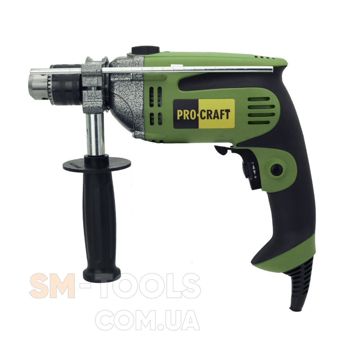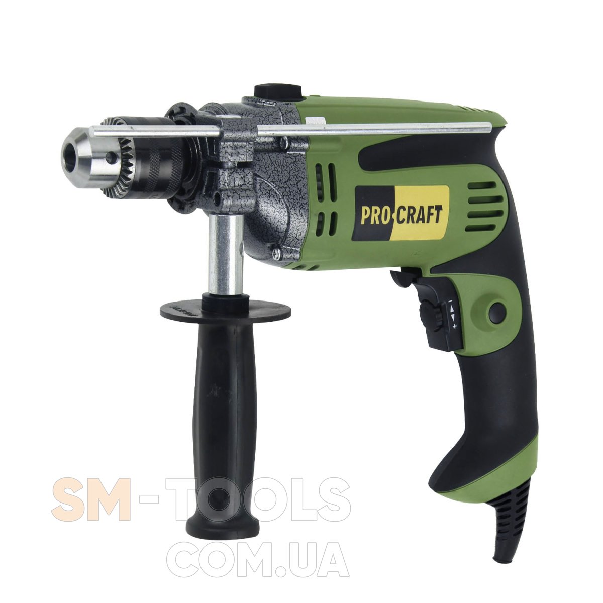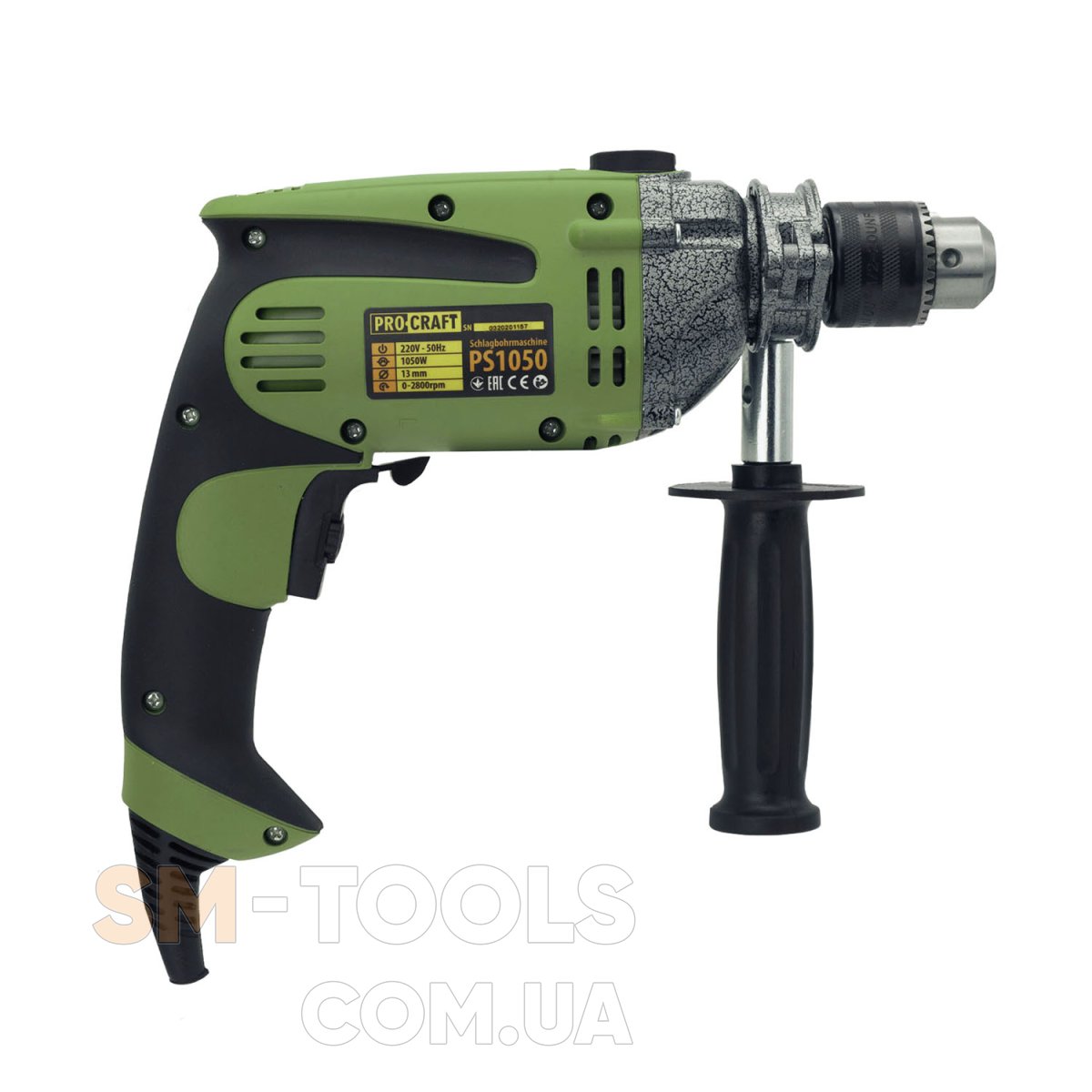 Ударная дрель промышленно-производственной марки PROCRAFT PS1050 предназначена для сверления отверстий в деревянных и металлических изделиях. Эксплуатационные характеристики Питание инструмента производится от бытовой электрической сети с номинальным напряжением 220-230 В. Мощности дрели в 1050 Вт достаточно для выполнения ремонтных и строительных работ как в домашних условиях, так и на небольшом производстве. Ключевой тип патрона с диаметром 13 мм позволяет использовать наиболее распространенные виды сверл по дереву и металлу. Максимально допустимый диаметр используемого сверла по дереву составляет 20 мм, по металлу – 13 мм. Вес дрели составляет всего 3 кг, что позволяет прилагать максимально допустимые усилия при сверлении в любом положении. Использование функции удара дополнительно увеличивает потенциальную мощность инструмента для работы с крепкими материалами. Форма изделия эргономична, высокое качество корпуса и ручек без острых углов и зазубрин позволяет максимально безопасно использовать электроинструмент. Фирма-производитель широко известна потребителям, поэтому качество ударной дрели гарантируется производителем. />Частота тока : 50 Гц