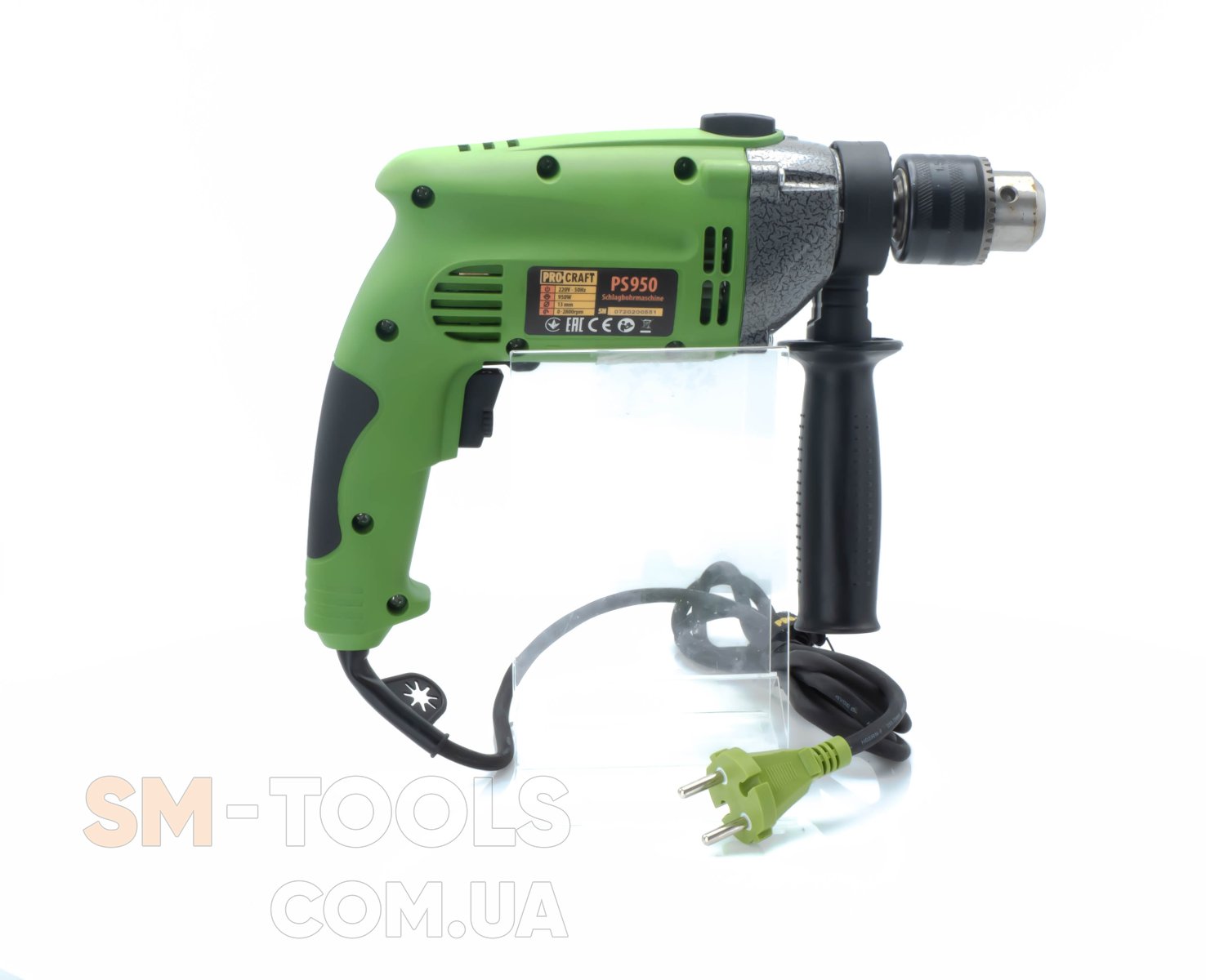 Дриль Procraft PS950 представляет собой небольшой ударный инструмент, заключенный в корпус из сверхпрочного пластика. Он работает с патронами на 13 мм и весит 2,3 кг. Аппарат работает от сети. Существует ряд важных преимуществ выбора именно этой модели устройства: относительно невысокая итоговая стоимость; мощность в 950 Вт позволяет аппарату работать даже в сложных эксплуатационных условиях; есть удар, позволяющий использовать устройство в качестве ударной дрели и быстрее справиться с биением отверстий; присутствует возможность использовать реверс для более чистого итогового результата. все равно хорошо работает с деревом и металлом. Почему следует выбрать именно ее? Производитель специализируется на изготовлении такого типа инструмента, что обеспечивает наличие длительной гарантии, хорошую сборку и выносливость каждого изделия. Именно поэтому покупателям рекомендуется обратить внимание на данную модель, которая относится к бюджетной ценовой категории, но имеет преимущества аппаратов среднего ценового сегмента. уга : 220В