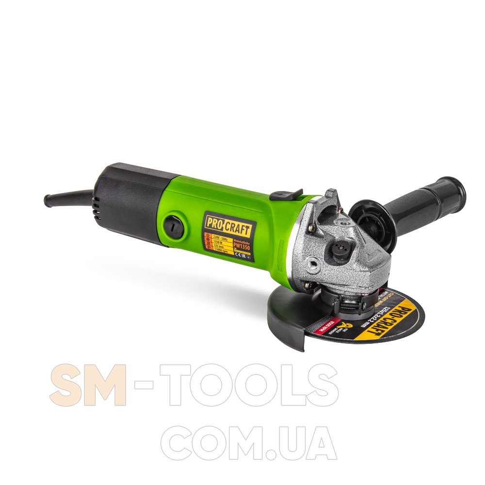 Углошлифовальная машина ProCraft PW1350 – высокопроизводительная модель для работы с металлом, камнем, кирпичом, бетоном, гранитом, керамической и облицовочной плиткой. При использовании различных дисков также позволяет производить шлифовку и полировку. Описание электроинструмента ProCraft PW1350 работает со скоростью до 11 тыс. об/мин. и имеет мощность 1350 Вт. Можно использовать диски, диаметр которых составляет не более 125 мм. Медная обмотка якоря и двойное покрытие лаком двигателя значительно увеличивают ресурс инструмента. В своей основе эта модель имеет вентиляционные отверстия, обеспечивающие эффективное охлаждение инструмента. Для удобства предусмотрена дополнительная рукоятка, которую можно устанавливать в несколько положений. Преимущества ProCraft PW1350 Электроинструмент подходит для использования в обиходе и на строительных площадках. Он имеет целый ряд преимуществ: Высокопрочный корпус редуктора из магниевого сплава. Снижен уровень шума. Усиленная защита от пыли. Низкопрофильная форма, благодаря которой можно проводить работы в труднодоступных местах. Корпус из ударопрочного пластика. Кожух защищает машину от механических повреждений и обеспечивает безопасность при ее использовании. : 220 В