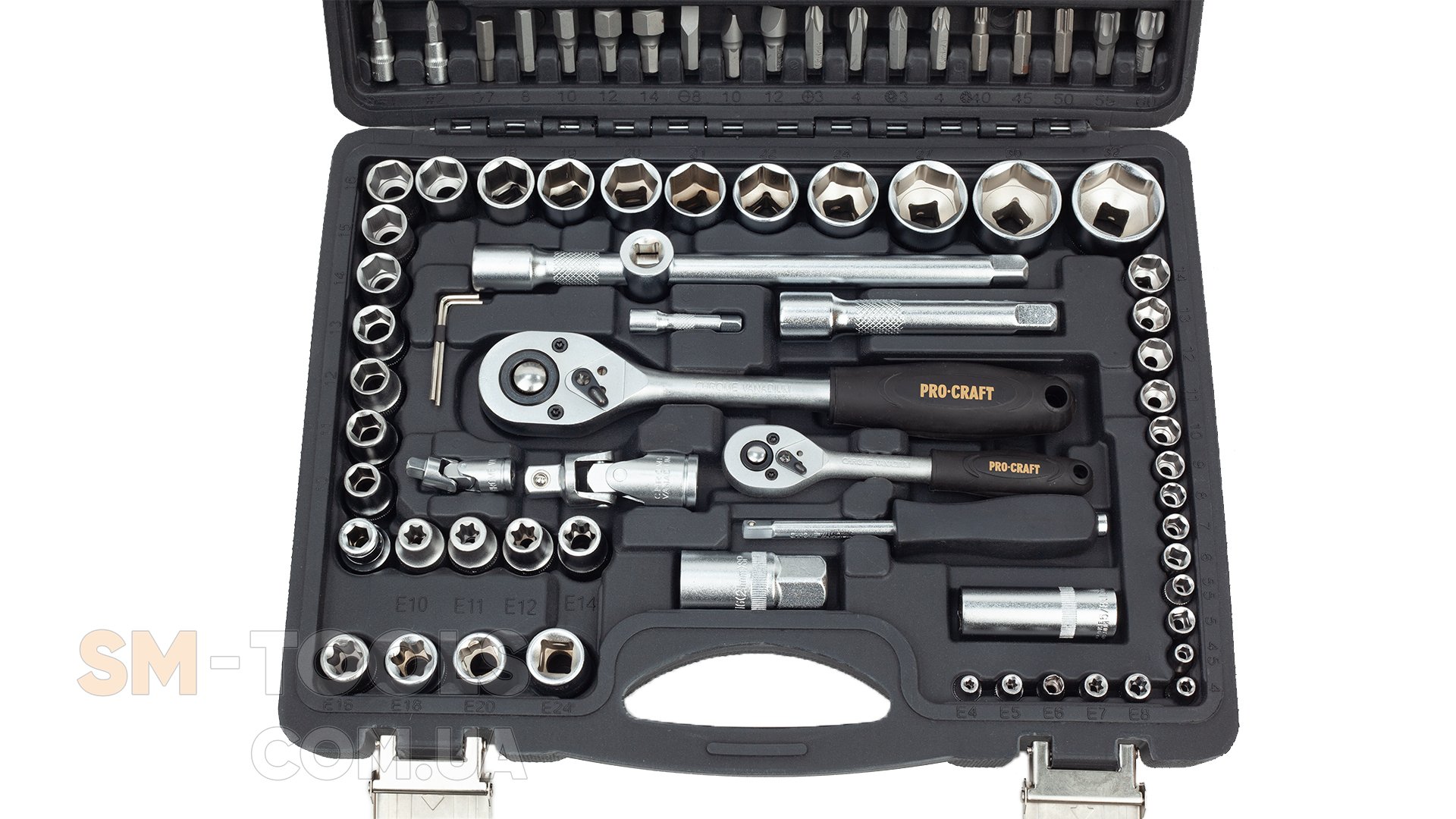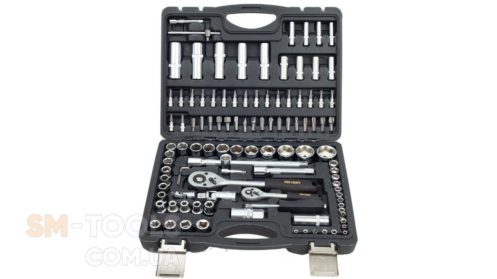 Набор ручного инструмента PROCRAFT WS108 представляет собой качественную и удобную подборку оснастки для автомобилей, состоящую из 108 позиций. Он достаточно практичный, помещен в удобный кейс и может без проблем транспортироваться в любой легковой машине. Комплектация В набор входят следующие элементы: Биты разного размера. Насадки. Головки торцевые. Воротки. Трещотки. Удлинитель. Элементы, входящие в состав набора, хорошо подходят для разных запчастей – можно использовать их для ремонта двигателя, подвески и других деталей и узлов. С их помощью можно легко производить качественный ремонт и обслуживание автомобилей разных марок. Набор инструментов объединяет в себе различные типы бит, торцевые головки диаметром 4-32 мм. Для изготовления элементов использована инструментальная сталь Cr-V, за счет чего насадки способны сохранить исходную форму даже после продолжительного использования. Удобный пластиковый кейс дополнительно обеспечивает целостность деталей и облегчает транспортировку. В составе набора есть насадки, полезные и автослесарям, и владельцам авто.
