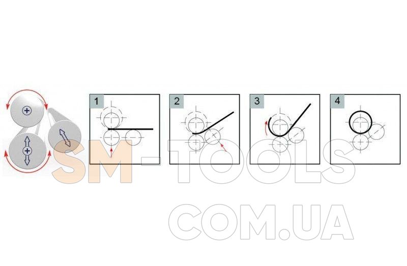 - Нижній і бічні вальці регулюються по висоті (вручну)