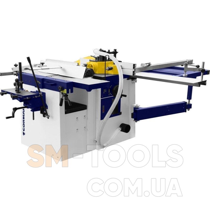Комбінований верстат CORMAK CMS260 - це багатофункціональне обладнання, що поєднує в собі можливості циркулярної пили, фугувального, рейсмусового, фрезерного та свердлильного верстатів. Досить компактна, продумана конструкція дозволяє ефективно використовувати його в умовах обмеженого простору. Оснащений 3 потужними, витривалими двигунами, що забезпечує продуктивну роботу з усіма породами деревини.