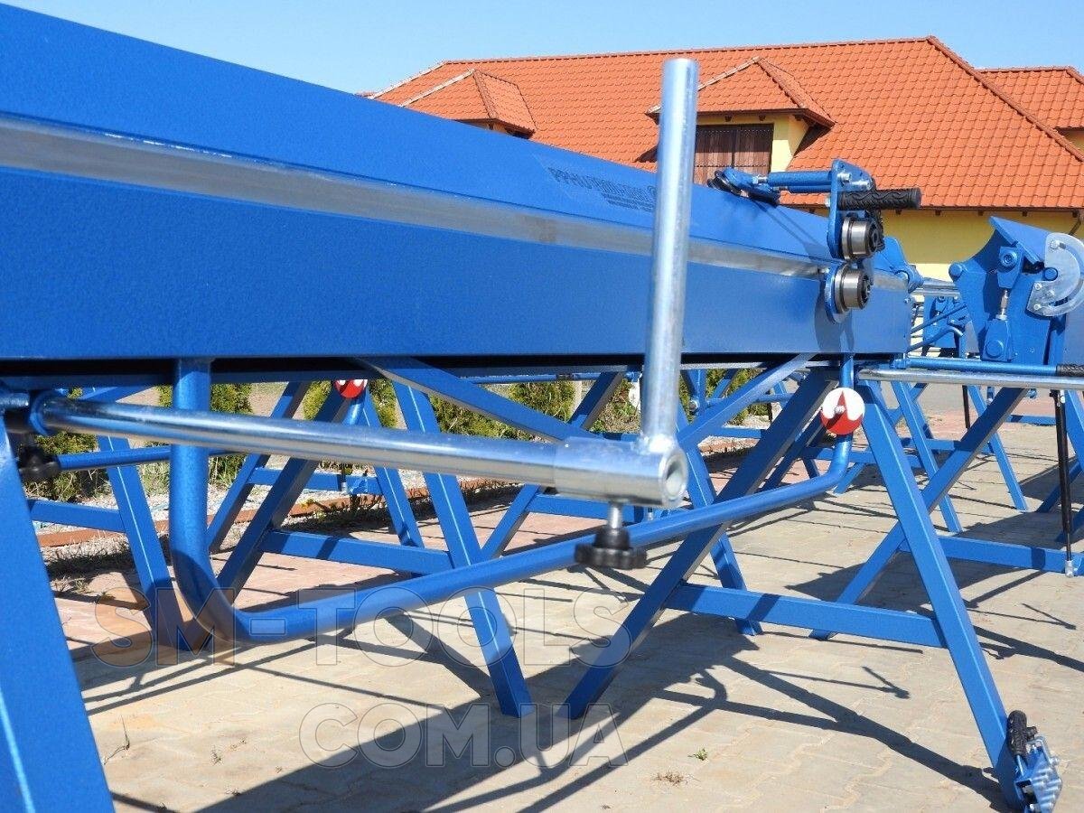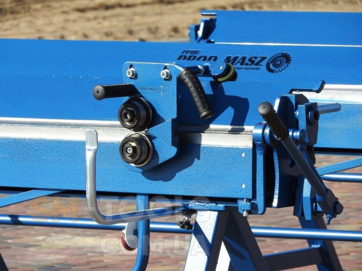 Оснащений задніми упорами для підтримки листа. Можливий підйом верхньої балки в 3-х положеннях. Максимальна висота підйому балки - 80 мм. Регульована геометрія згинальної балки забезпечує рівномірне згинання по всій довжині. Верстат має вбудований кутомір, який дає змогу точно згинати заготовку під потрібним кутом. Опційно доступний роликовий ніж зі зручною ручкою для швидкого і точного відрізання по всій довжині листа і довальцювальник. Листозгинальний верстат Prod-masz ZGR-2500 надійний і зносостійкий за рахунок зварної конструкції з міцної сталі. Щоб замовити цю модель, переходьте в онлайн-магазин обробка листового металу Україна KMA.UA.