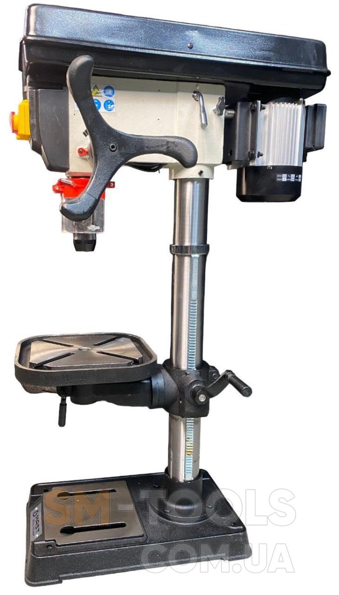 Трифазний індукційний двигун потужністю 600 Вт забезпечує 12 швидкостей обертання шпинделя у діапазоні 180-2740 об/хв. Хід шпинделя - 80 мм, здатний свердлити отвори діаметром до 20 мм. Стіл можна відрегулювати по висоті і куту нахилу відносно шпинделя, а при роботі з великими заготовками - зняти і у якості опори використовувати основу. Т-подібні пази на столі та основі дають змогу надійно зафіксувати заготовку або додаткове обладнання. Верстат має міцну і надійну конструкцію: свердлильна голова, стіл та основа виготовлені з чавуну, колона - зі сталі. Продаж свердлильних верстатів у нашому магазині здійснюється з гарантією 12 місяців, що дозволяє бути впевненим у їх якості.