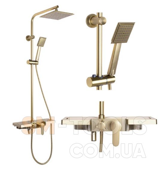 Душевый гарнитур REA BRAVO BRUSHED GOLD матовое золото с изливом *
