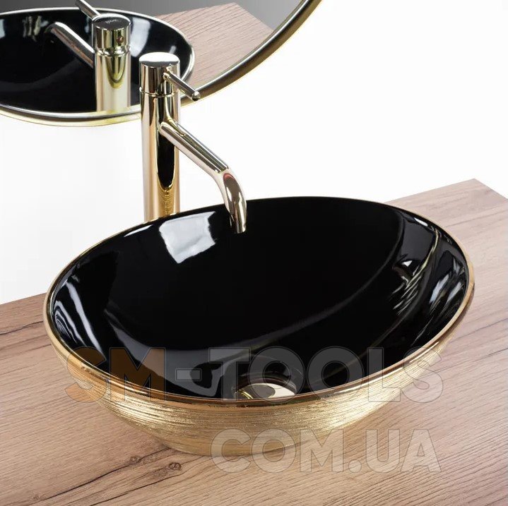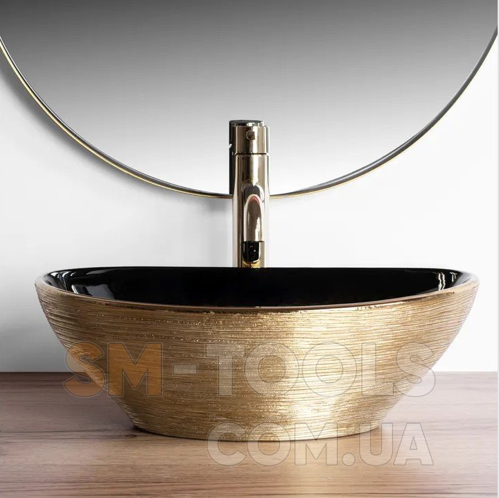 Описание Умывальник (раковина) REA SOFIA BRUSHED GOLD BLACK накладной *