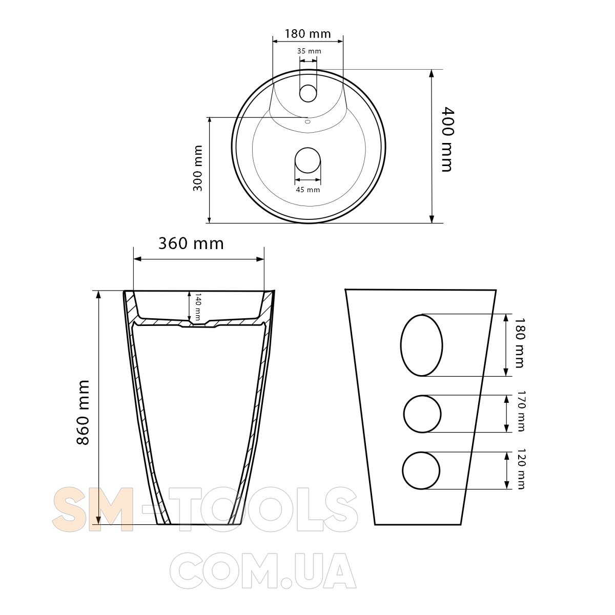 Отдельностоящая раковина из коллекции Bolonia поражает своим круглым профилем, сверху вниз она как будто немного сужается, что придает раковине легкости. Умывальник станет центральным элементом ванной комнаты и придаст ей выразительный вид. керамика