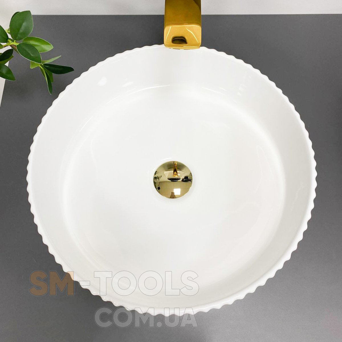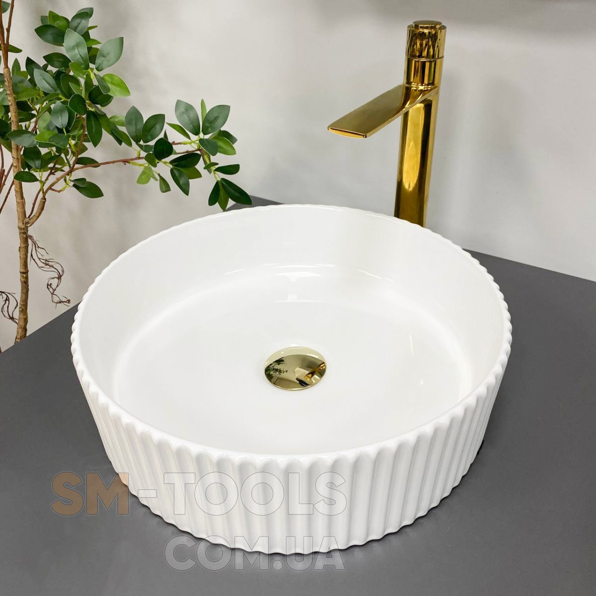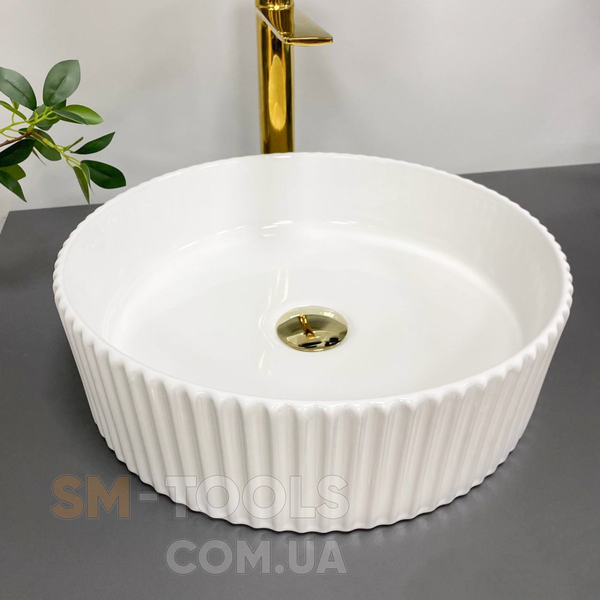 Накладные раковины серии VBI BRINDISI пользуются высоким спросом. Раковина круглой формы, гладкая снутри, а снаружи имеет рифленую текстуру, придающую современный вид. Предназначена для установки на столешницу и изготовлена из высококачественной керамики.