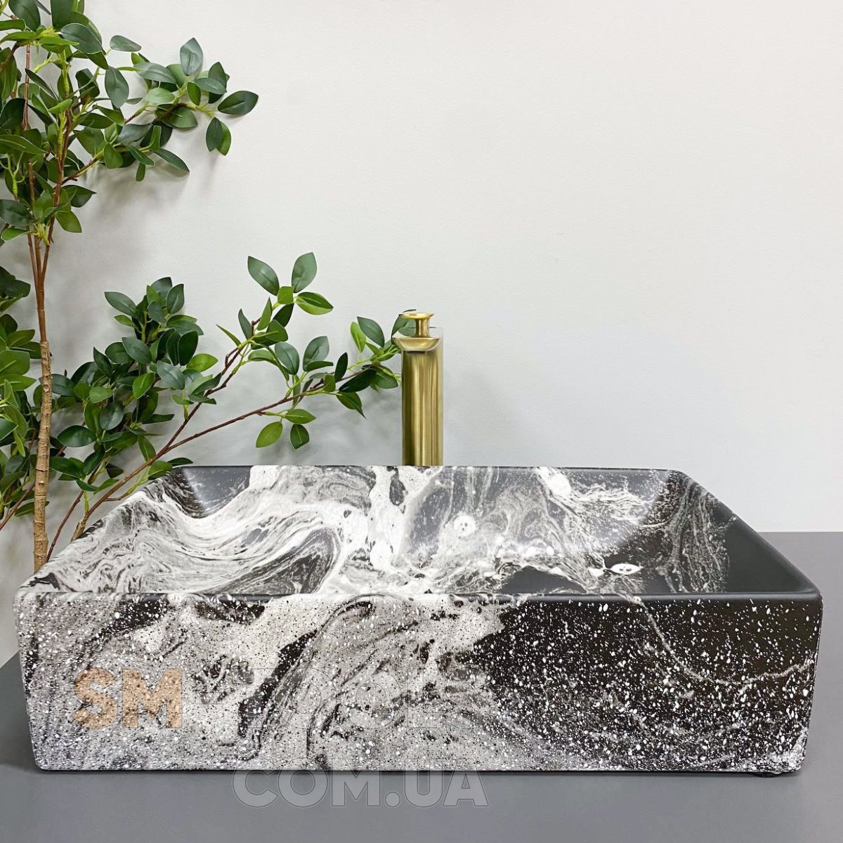 Накладные раковины серии VBI LATINA пользуются высоким спросом и доступны в разных цветах в матовом исполнении. Имеет четкую прямоугольную форму и идеальные пропорции с прямыми углами, но внутри они сглажены, поэтому ее легко поддерживать в чистоте. Модель VBI LATINA DARK MARMO имеет уникальный узор. На стенках наружной стороны имеет белые хаотические вкрапления, что делает ее неповторимой.