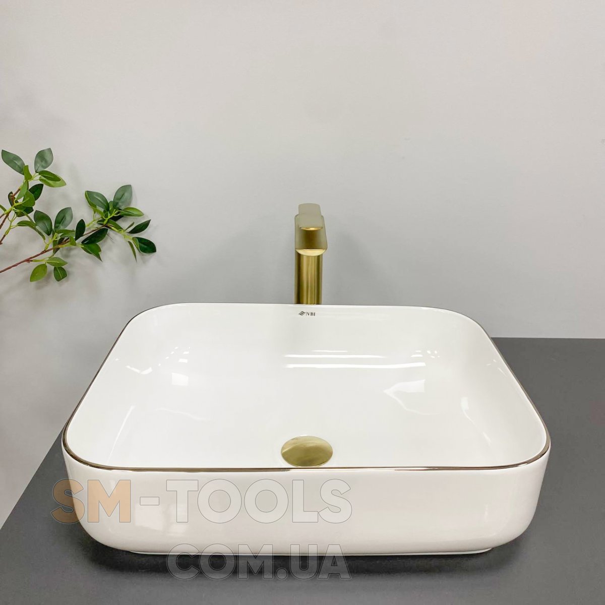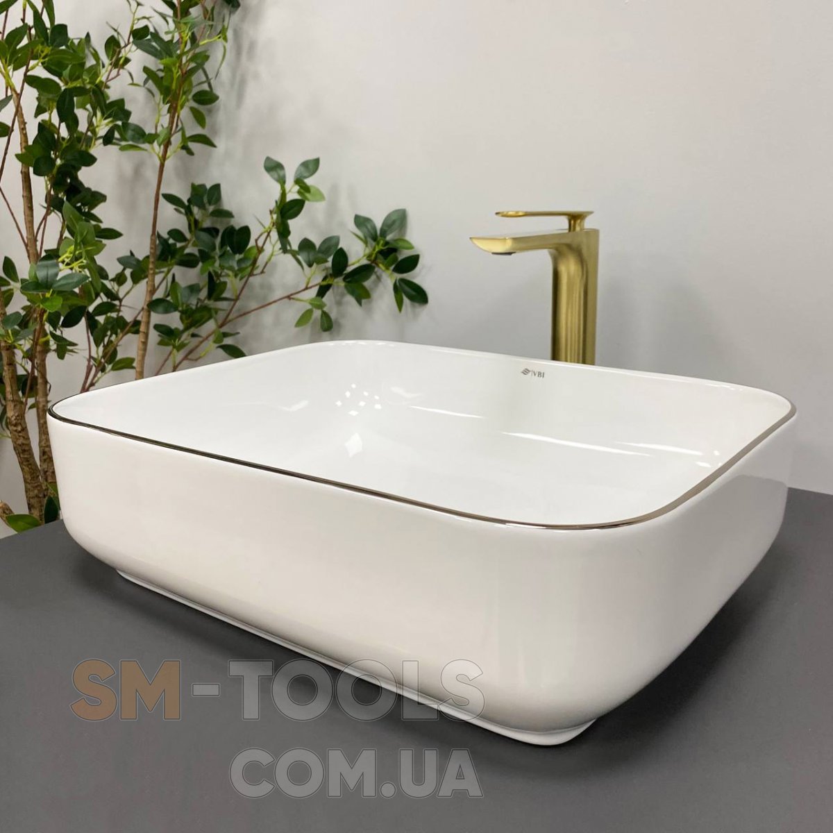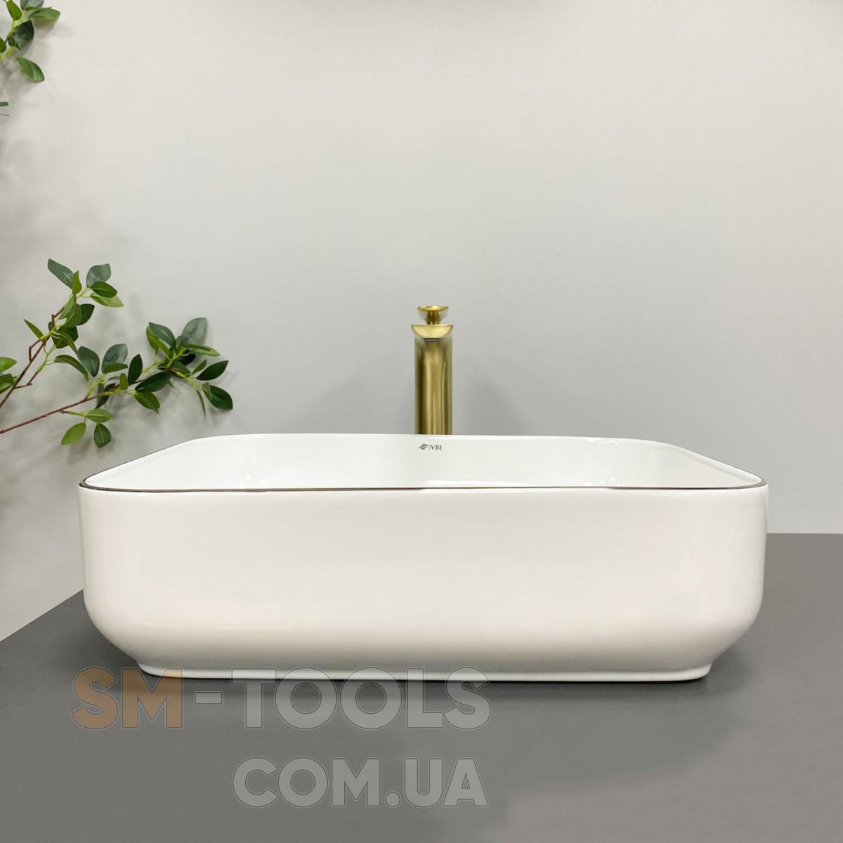 Характеристики Умывальник (раковина) VBI PALERMO WHITE ROSE GOLD EDGE />Форма раковины: прямоугольная