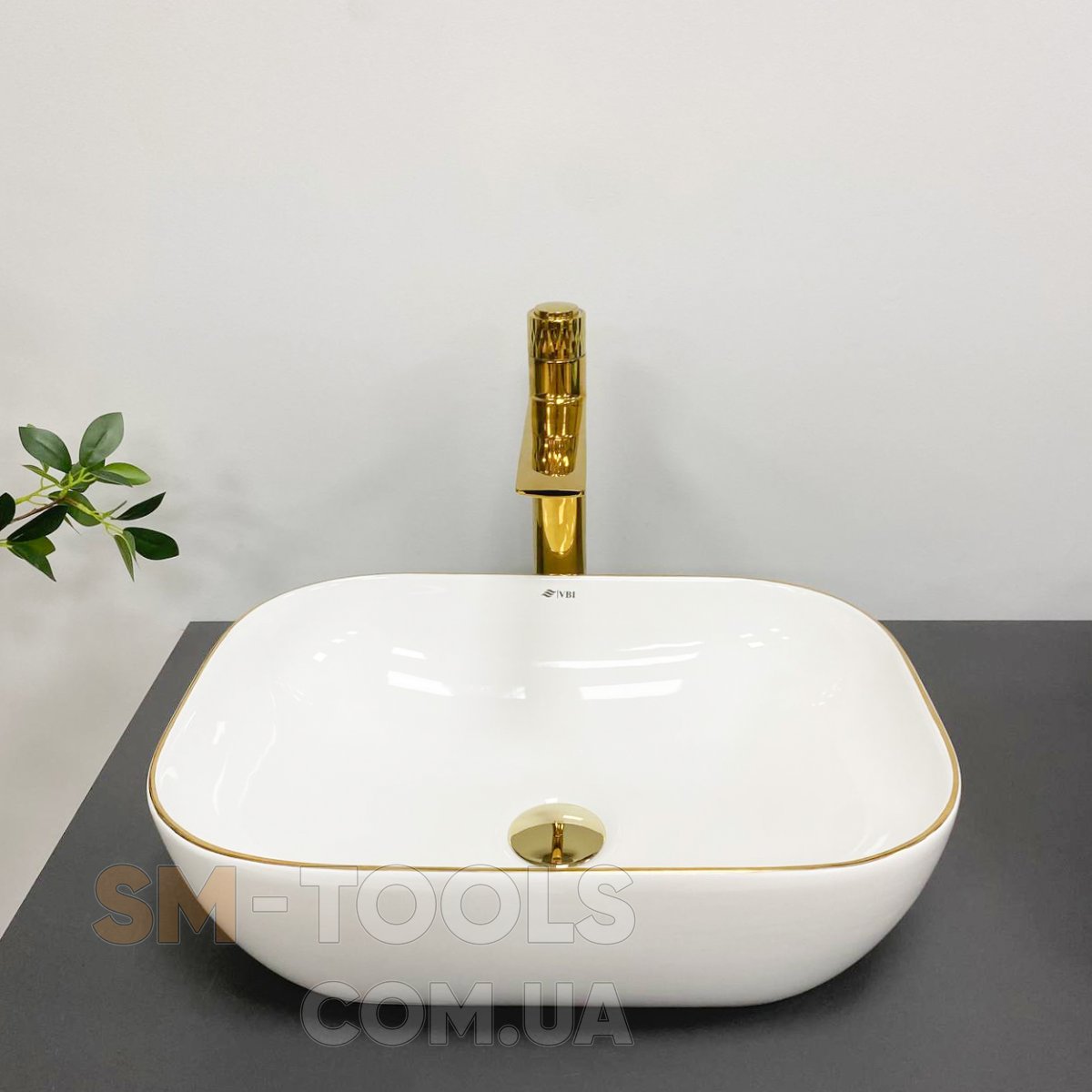 Умывальник (раковина) VBI RAVENNA WHITE GOLD EDGE накладной