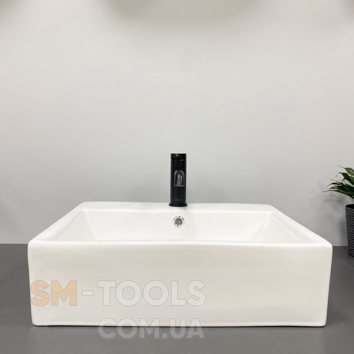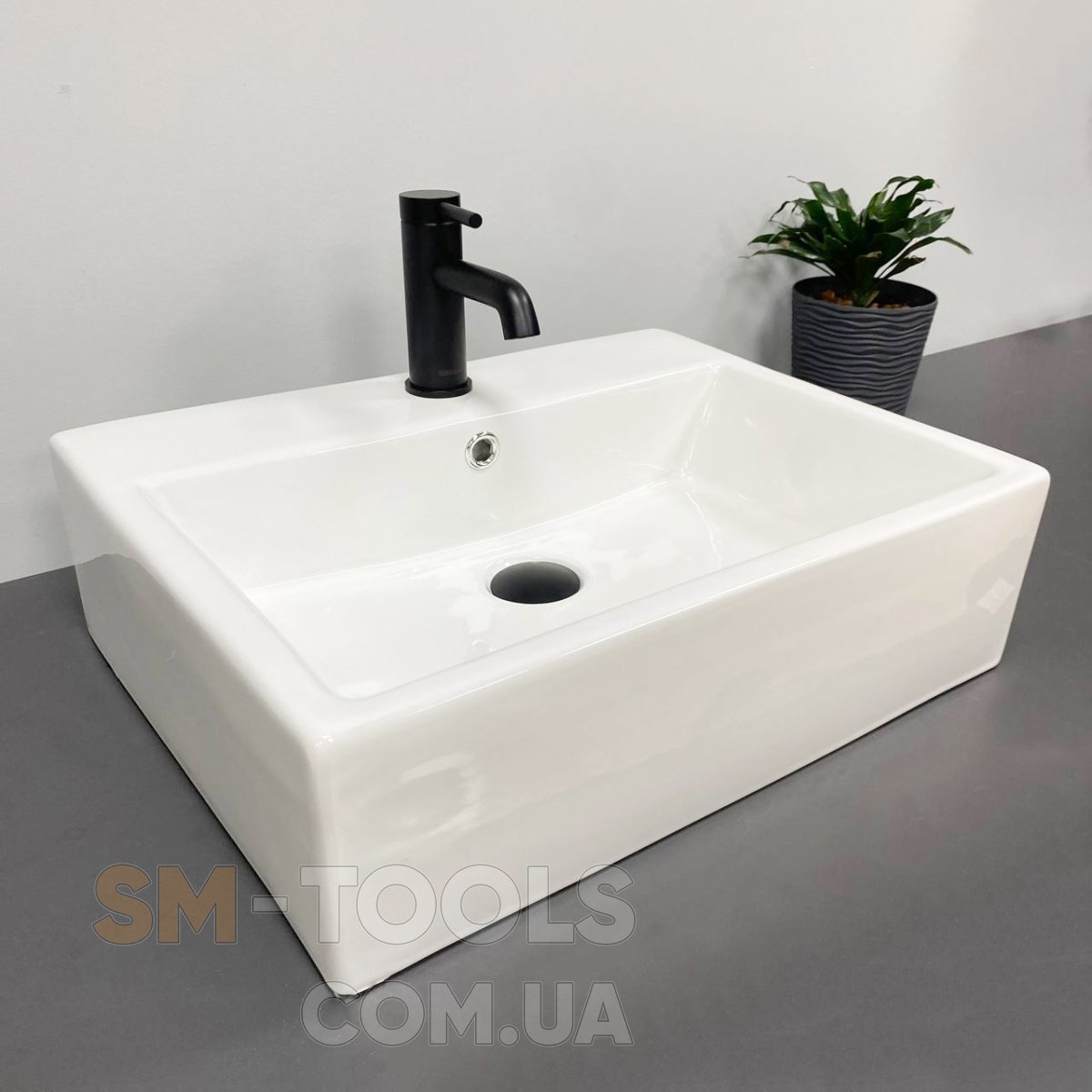 Раковины VBI TERAMO пользуются высоким спросом и доступны в классическом белом цвете с глянцевым покрытием, в разных размерах. Накладная по способу установки раковина имеет отверстие для смесителя, что позволяет сэкономить дорогостоящее пространство в ванной комнате. Раковина квадратной формы с четкими прямыми линиями.
