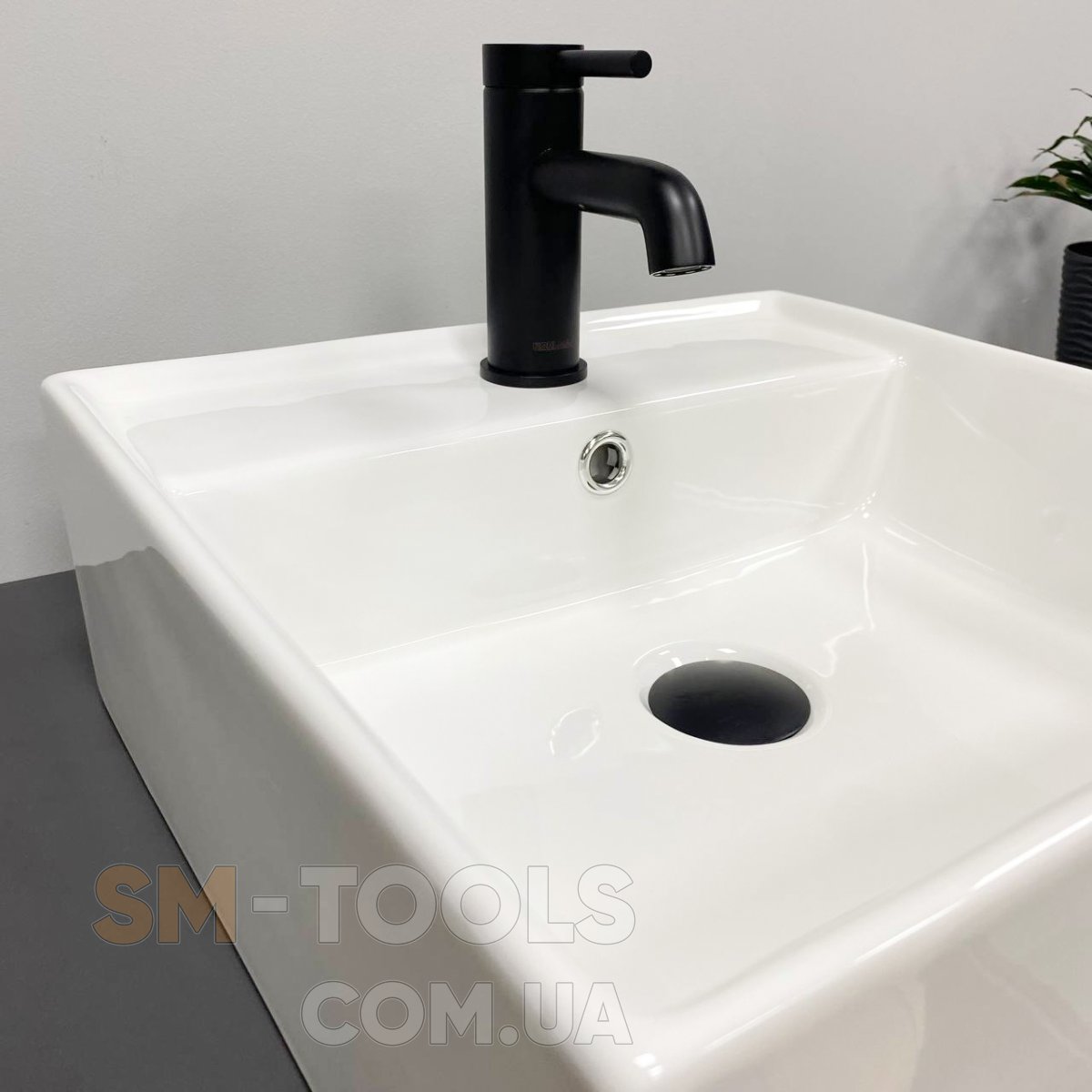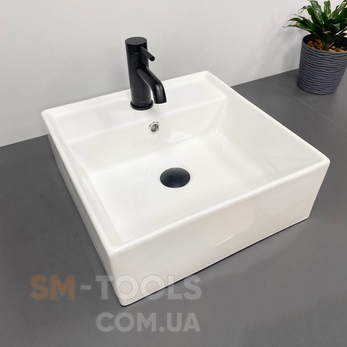 Раковины VBI TERAMO пользуются высоким спросом и доступны в классическом белом цвете с глянцевым покрытием, в разных размерах. Накладная по способу установки раковина имеет отверстие для смесителя, что позволяет сэкономить дорогостоящее пространство в ванной комнате. Раковина квадратной формы с четкими прямыми линиями.