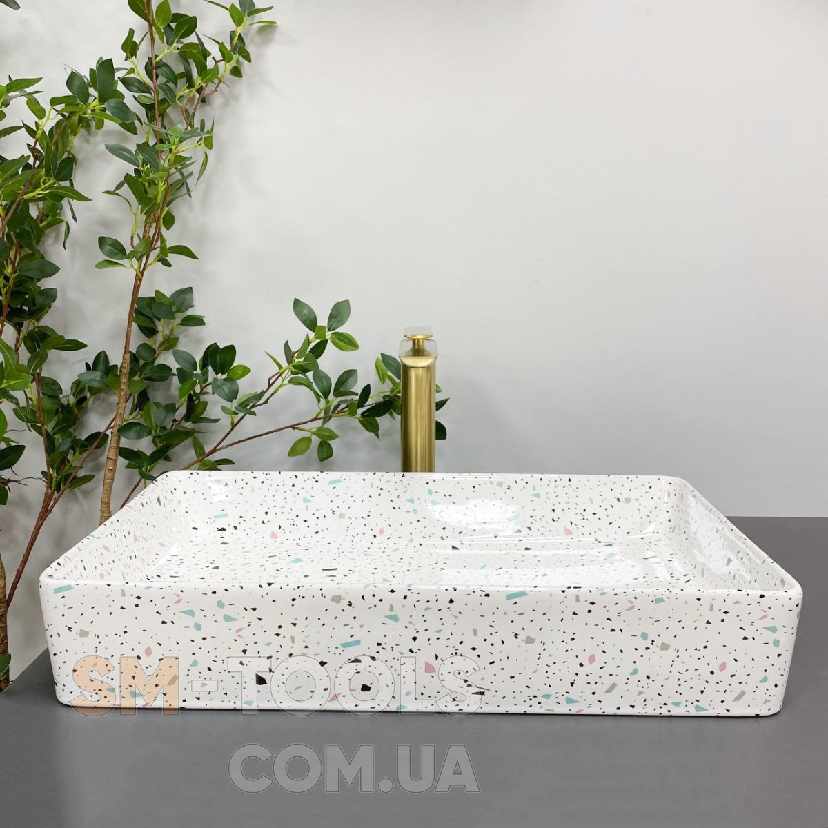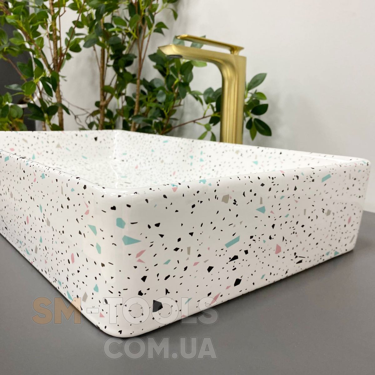 Накладные раковины серии VBI TRIEST пользуются высоким спросом и доступны в разных цветах в глянцевом или матовом исполнении. Идеальная прямоугольная форма и прямые стенки, нарушенная легкими изгибами внутри, что создает современный и классический вид. Предназначен для установки на столешницу. Модель VBI TRIEST MOSAIC – имеет уникальный разноцветный рисунок. >Материал : керамика