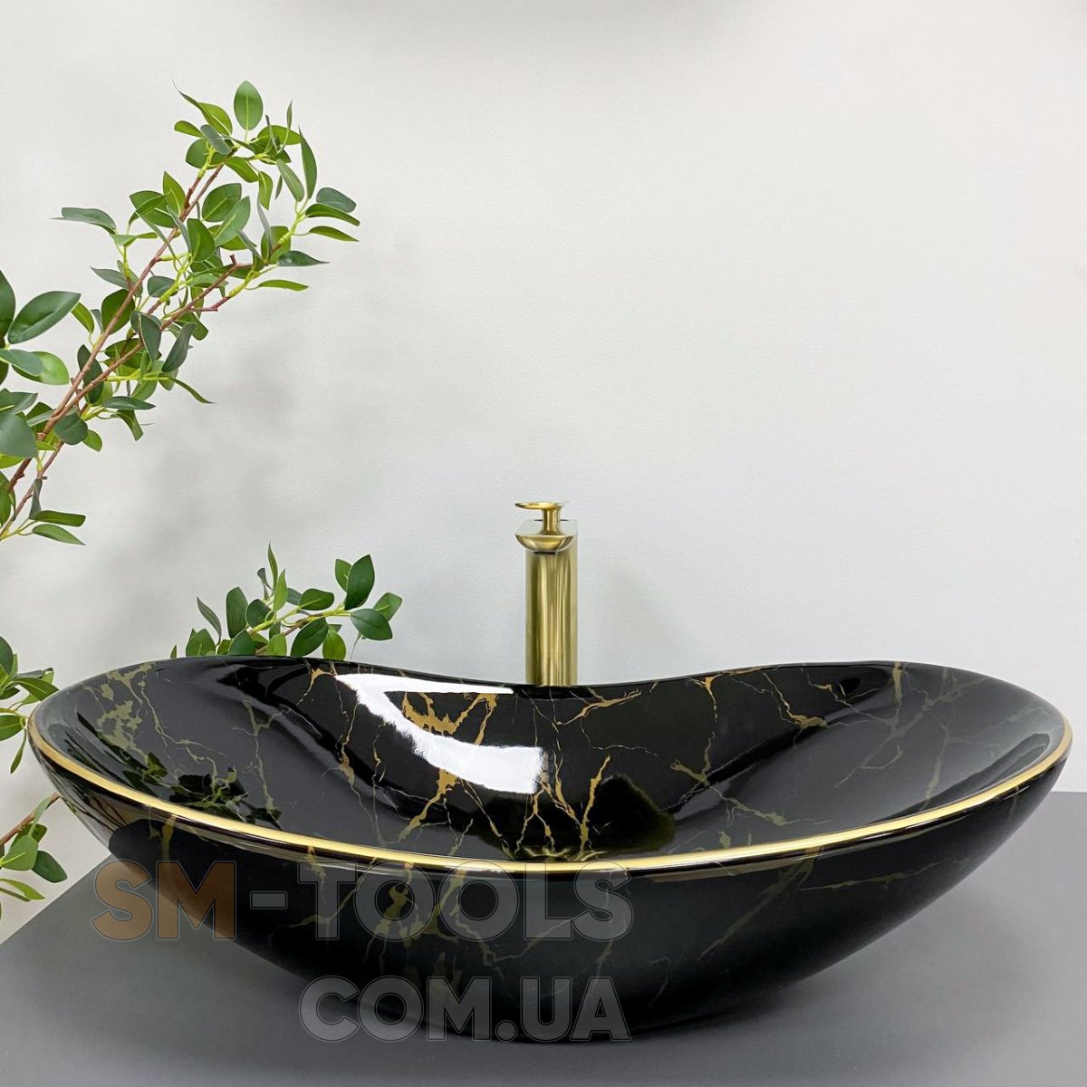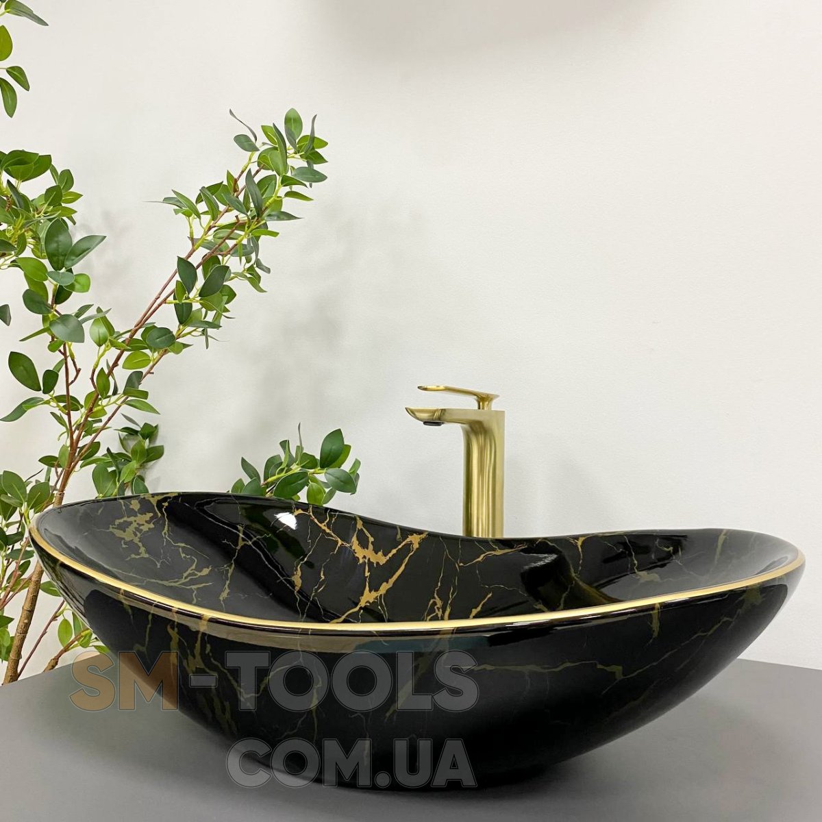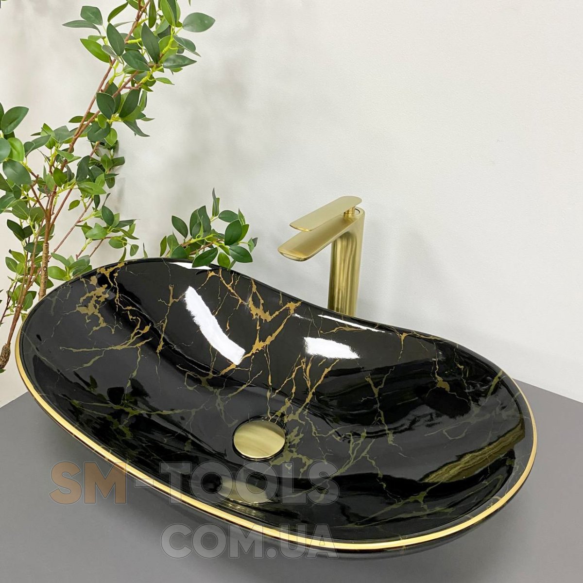 Накладные раковины серии VBI TURIN пользуются высоким спросом и доступны в разных цветах в глянцевом или матовом исполнении. Имеет современную овальную форму с тонкими линиями, а края немного приподняты к верху, что обеспечивает максимальный комфорт при использовании. Раковина VBI TURIN MARBLE BLACK - имеет уникальный рисунок, имитации гранита с золотым ободком и гладкую, глянцевую поверхность, которая выглядит минималистически и придает общий блеск.