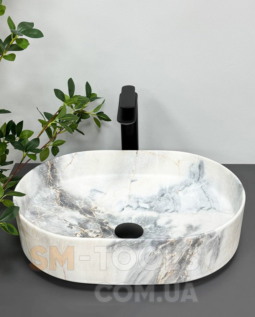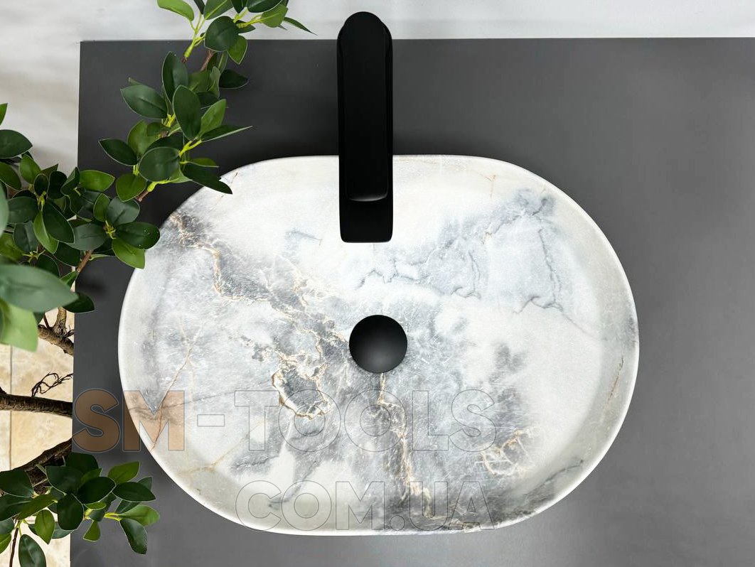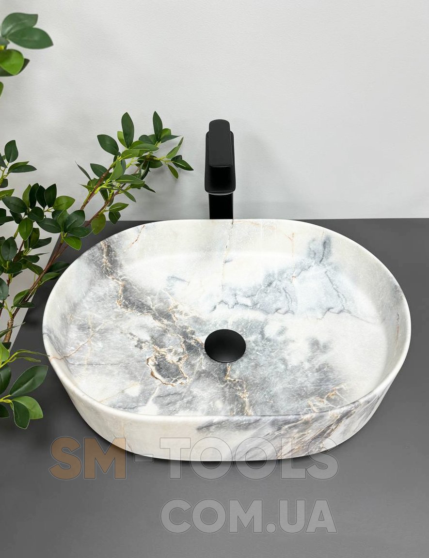 Характеристики Умывальник (раковина) VBI VERONA 50 GRANIT MATT накладной Форма раковины : овальная