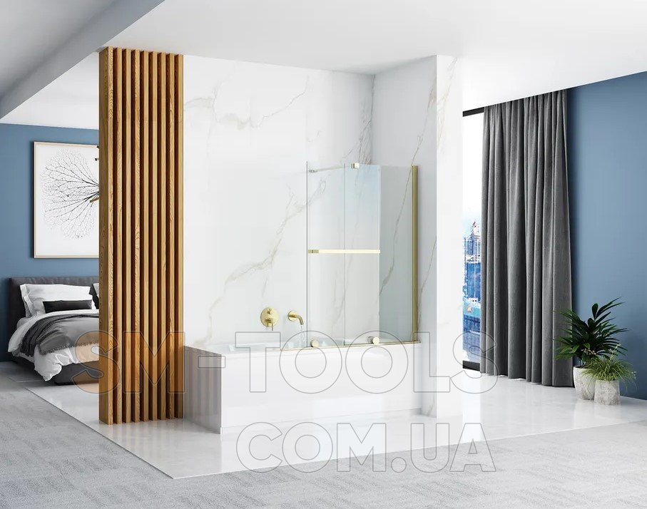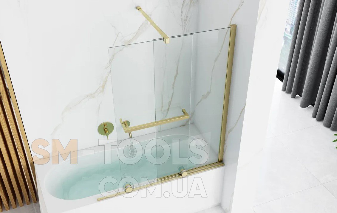 Раздвижная шторка для ванны REA FABIAN 100 BRUSHED GOLD раздвижная