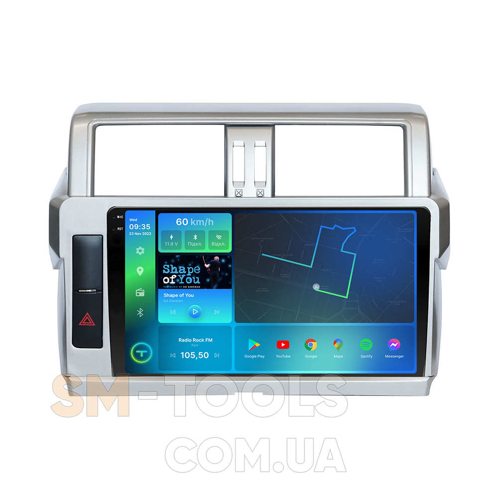 Цифрова магнітола, дизайн якої повністю розроблений під особливості салону вашого автомобіля, працює на ОС Andriod, підтримує інтернет-підключення Wi-Fi, 3G/4G, систему контролю тиску в шинах TPMS, систему кругового огляду 360 градусів, а також Carplay/Android Auto та відповідає найвищим вимогам шанувальників музики під час поїздок на авто.