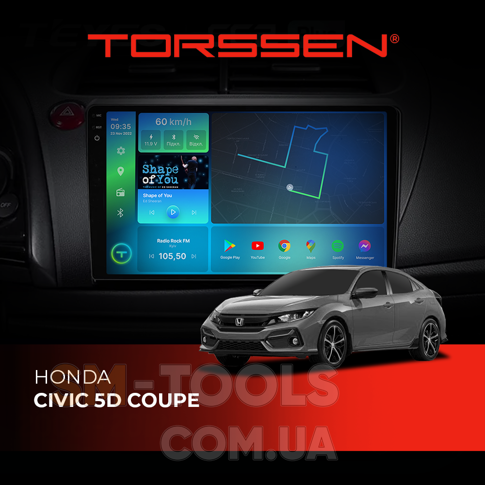 Опис Штатна магнітола Torssen 2K Honda Civic 5D Coupe FL9 4+64Gb 4G Carplay DSP