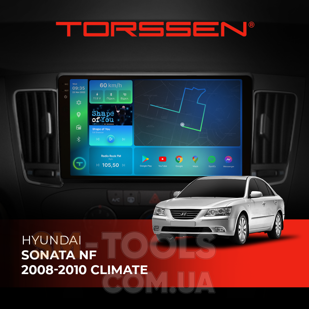 Опис Штатна магнітола Torssen 2K Hyundai Sonata NF 08-10 climate FL9 4+64Gb 4G Carplay DSP