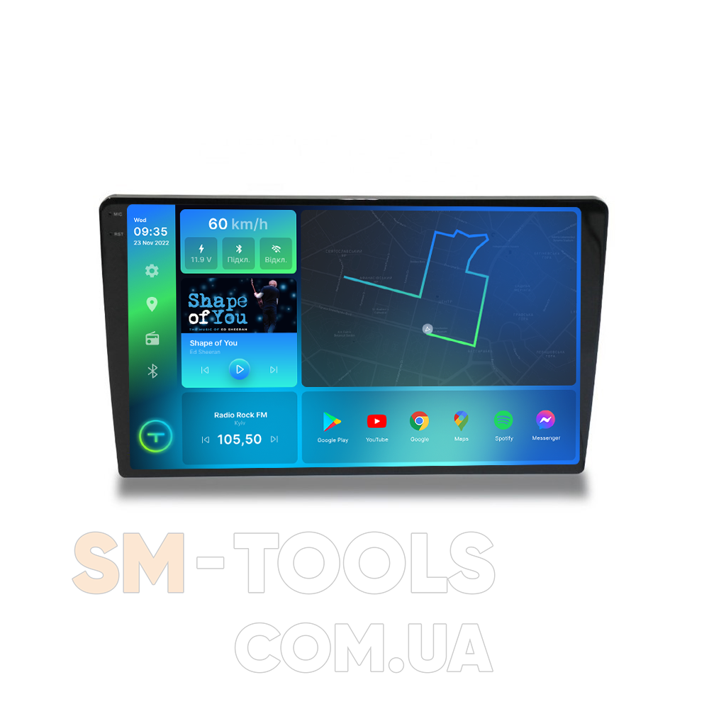Цифрова автомагнітола, дизайн якої був повністю розроблений під особливості салону вашого автомобіля, працює на ОС Android, підтримує інтернет-підключення Wi-Fi, 3G/4G, систему контролю тиску в шинах TPMS , систему кругового огляду 360 градусів , а також Carplay/Android Auto та відповідає найвищим вимогам поціновувачів музики під час поїздок на авто.