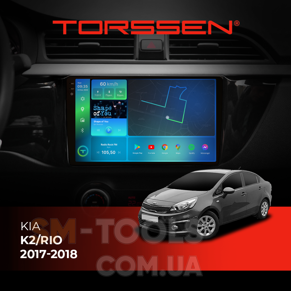 Опис Штатна магнітола Torssen 2K Kia K2/Rio 17-18 FL9 4+64Gb 4G Carplay DSP
