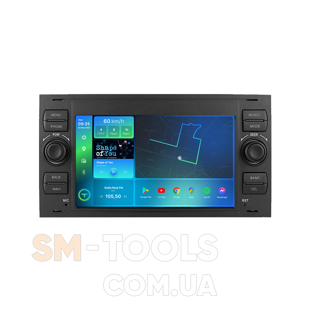 Цифрова магнітола, дизайн якої повністю розроблений під особливості салону вашого автомобіля, працює на ОС Andriod, підтримує інтернет-підключення Wi-Fi, 3G/4G, систему контролю тиску в шинах TPMS, систему кругового огляду 360 градусів, а також Carplay/Android Auto і відповідає найвищі вимоги любителів музики під час поїздок на авто.