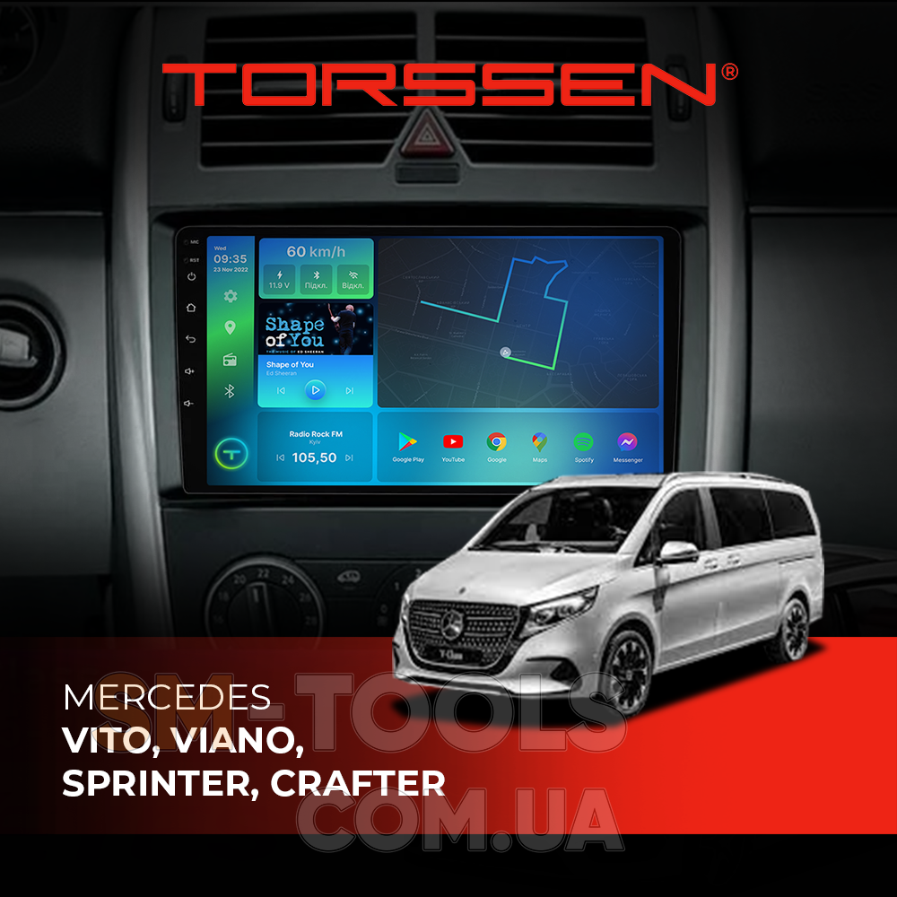 Опис Штатна магнітола Torssen Mercedes Vito, Viano, Sprinter, Crafter FL9 4+64Gb 4G Carplay DSP
