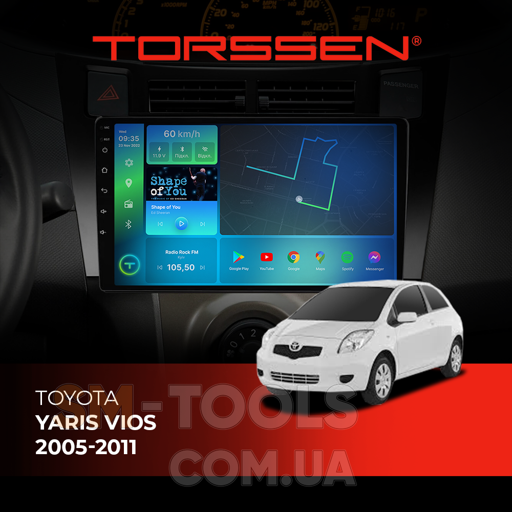 Опис Штатна магнітола Torssen Toyota Yaris Vios 05-11 black FL9 4+64Gb 4G Carplay DSP