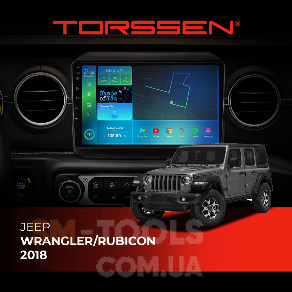 Опис Штатная магнитола Torssen Jeep Wrangler/Rubicon 2018 FL9 4+64Gb 4G Carplay DSP