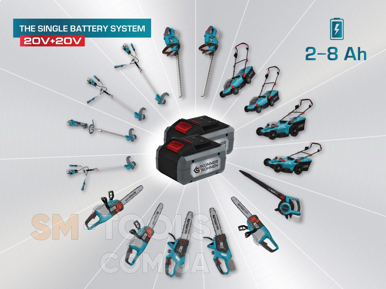 Вестную часть стоимости аккумуляторных инструментов составляют именно аккумуляторы, а возможность использовать тот же аккумулятор для нескольких инструментов позволяет существенно сэкономить средства. Универсальные аккумуляторы* K?nner & S?hnen® подходят для всех аккумуляторных садовых инструментов нашей торговой марки, так что пользователю достаточно один раз приобрести аккумуляторную батарею выбранной емкости и зарядное устройство и использовать их с любым аккумуляторным прибором нашей линейки.